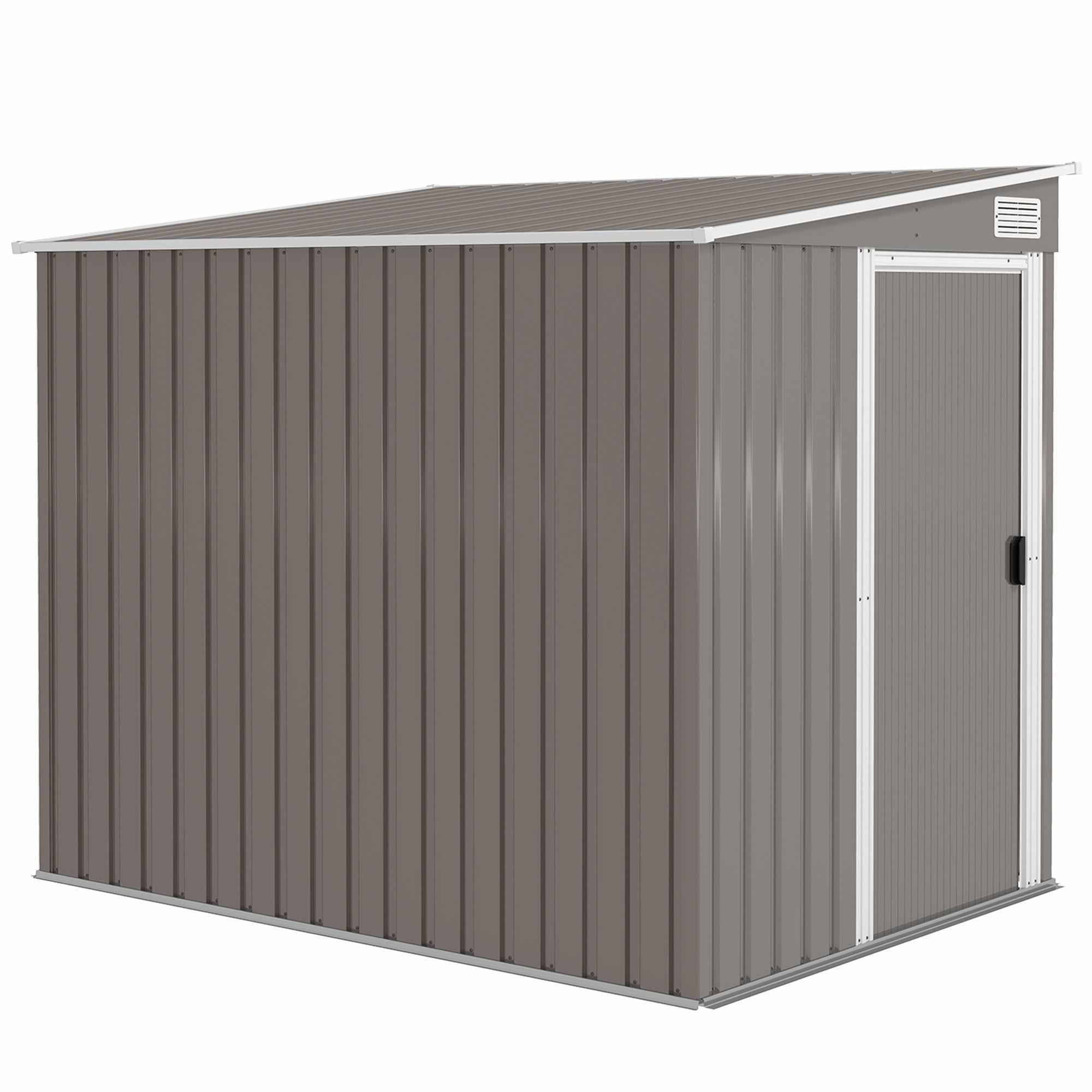 - • Sloped roof design allows the tool shed to be positioned against walls