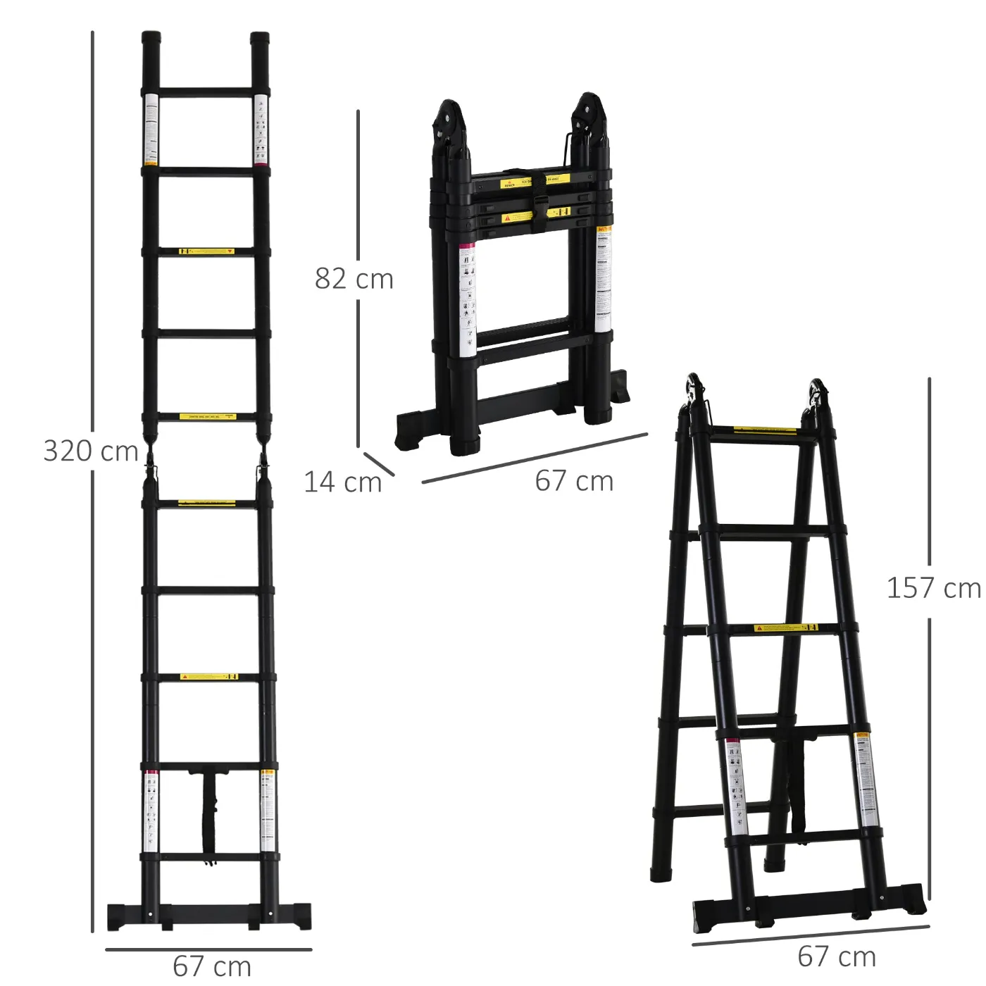 - • The maximum height of the A-shaped work ladder is 157 cm