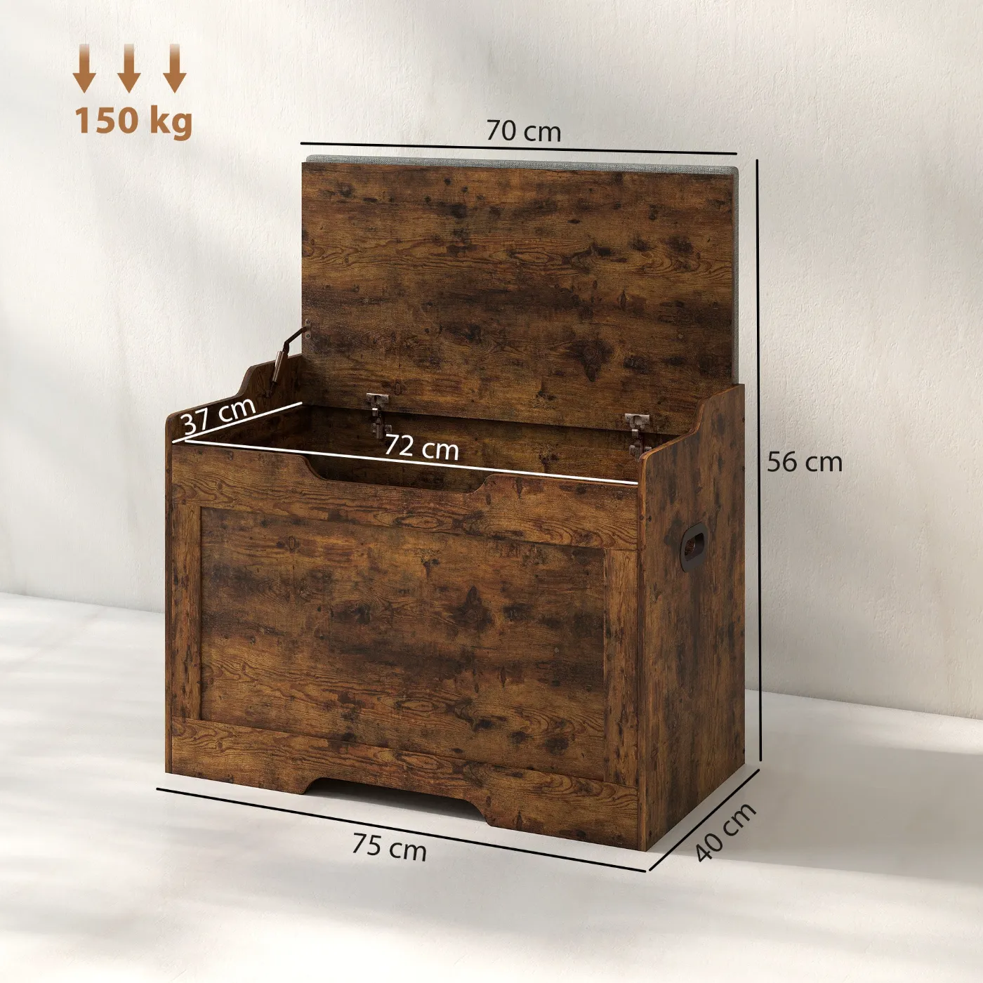 - COMFORTABLE SEATING: Thanks to a linen-look fabric seat cushion and foam padding, this wooden trunk transforms into a practical shoe bench. The removable and washable cover ensures easy cleaning.