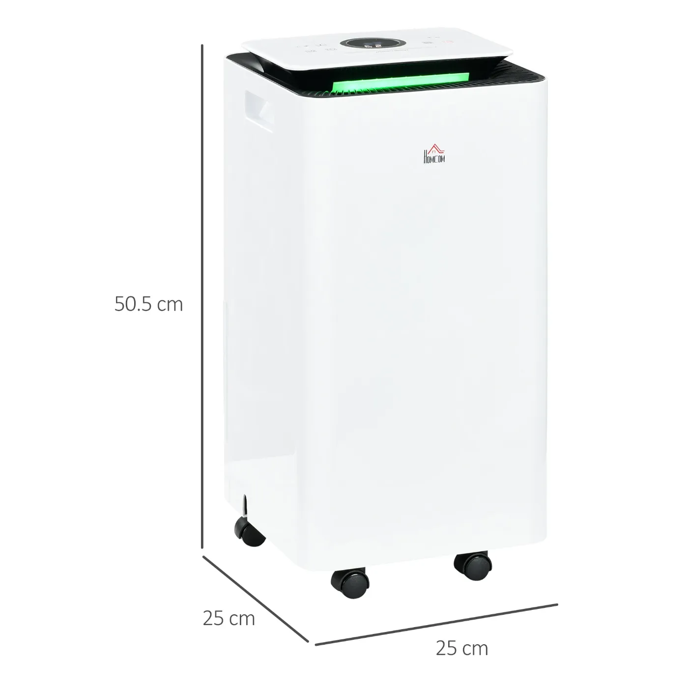 - • Swivel wheels and handle for easy movement of the mini dehumidifier