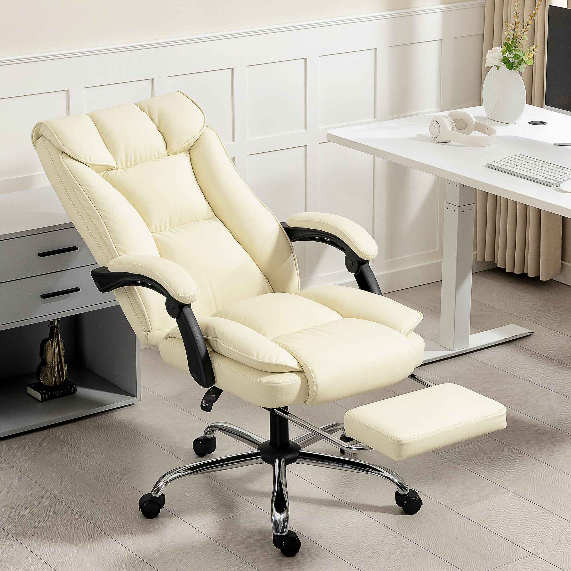 - • Office chair reclines up to 155° with footrest for complete relaxation
