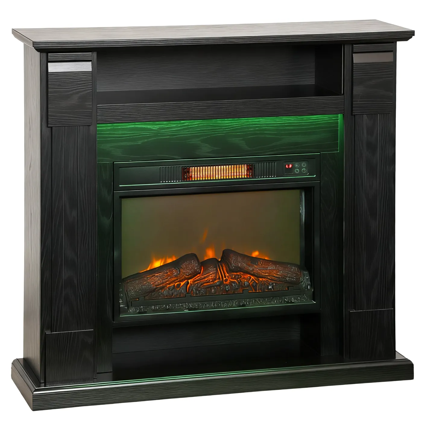 - RGB LED FLAMES: Our built-in electric fireplace’s 3D flame effect can be activated independently and features 5 brightness levels. Don’t forget to use the top shelf for ornaments or other items, while the lower compartment offers an elegant and functional space for storing firewood.