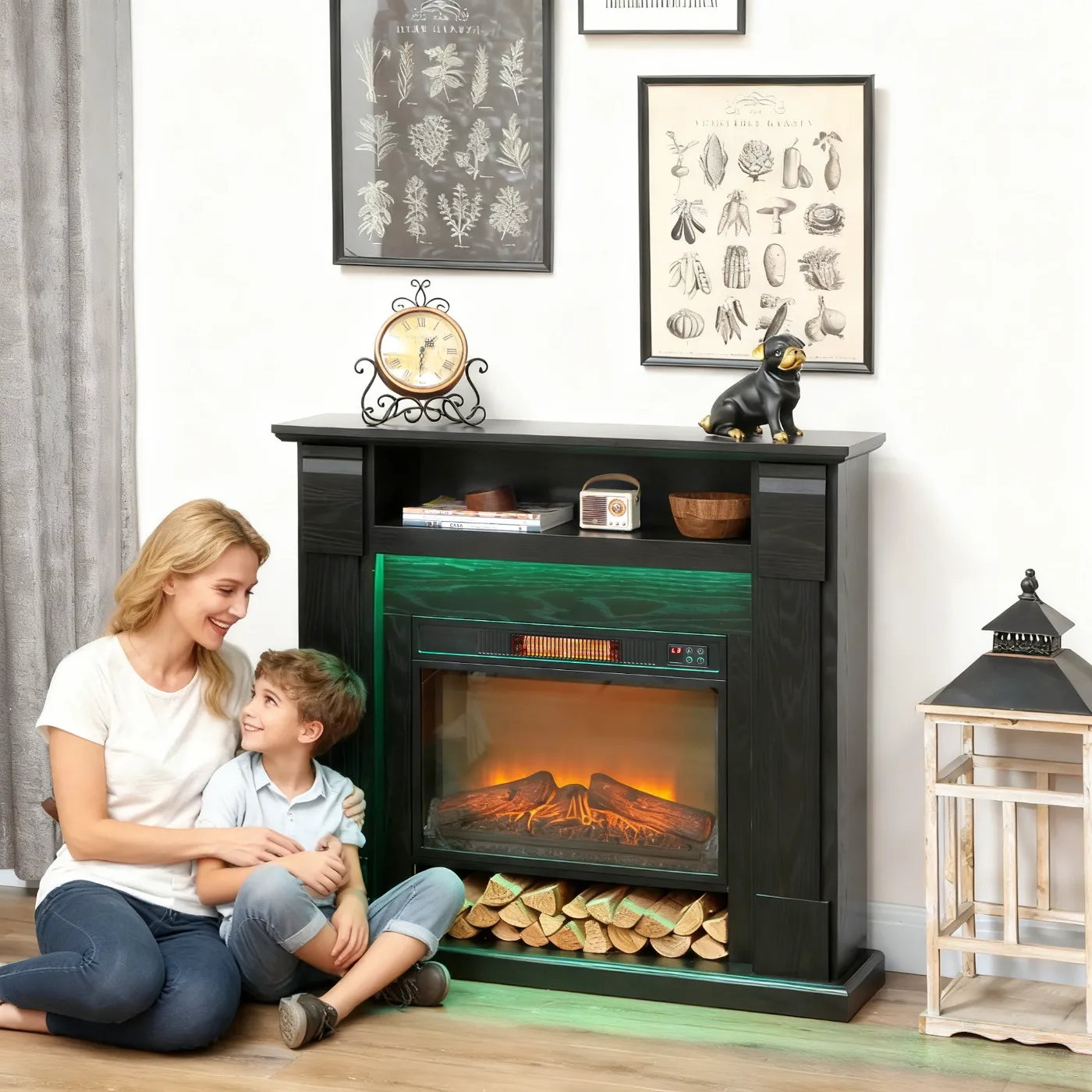 - • Enjoy realistic 3D flames with 3 brightness levels of the built-in fireplace to create a cozy atmosphere