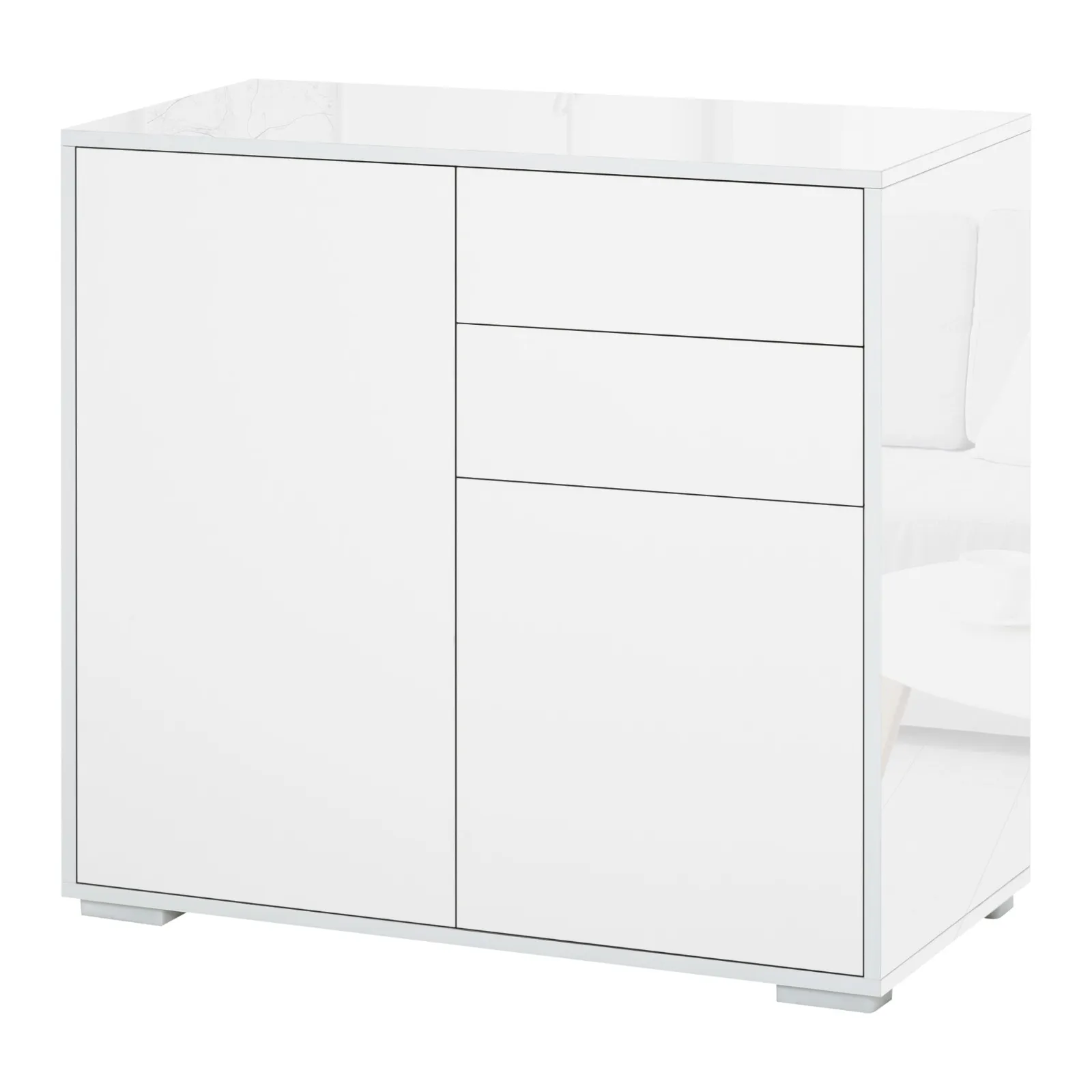 - MODERN AND ELEGANT LOOK: The 2-drawer, 2-door cabinet features a classic color scheme and contemporary lines. The cabinet complements a variety of modern decor styles, bringing a fresh touch.