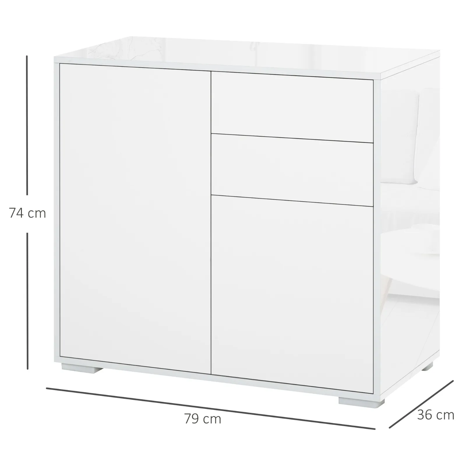 - DIMENSIONS: Overall dimensions of the multipurpose cabinet with 2 drawers and 2 cabinets: 79W x 36D x 74Hcm. Weight capacity: 50kg.