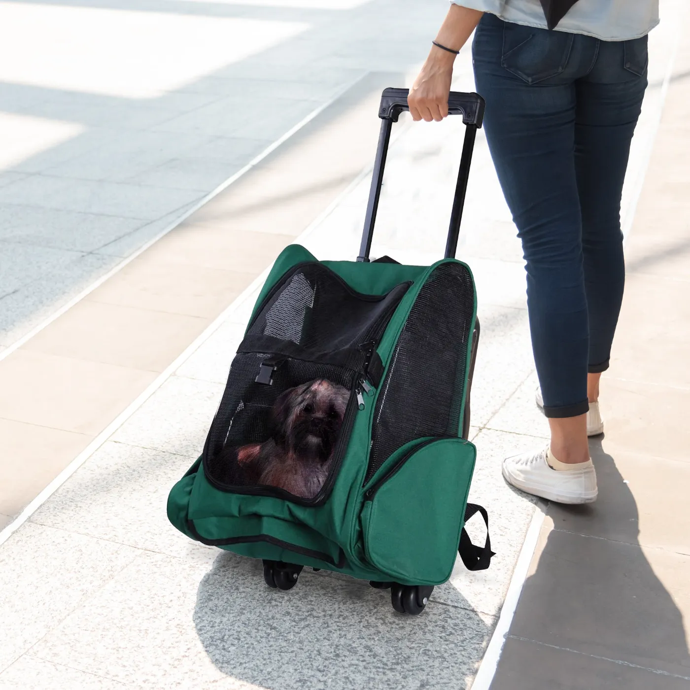 - 2 IN 1 DESIGN: You can use it as a carrier backpack or as a trolley thanks to the wheels and practical extractable handle, so you can easily move wherever you want.