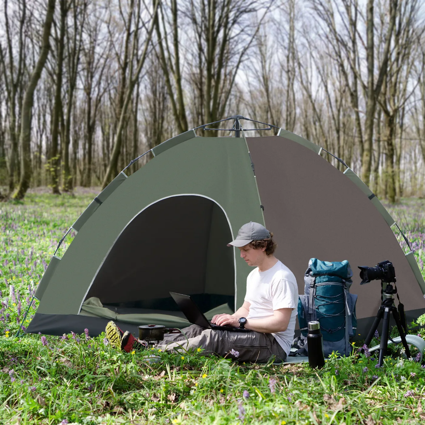 - • Camping tent with water-resistant polyester fabric