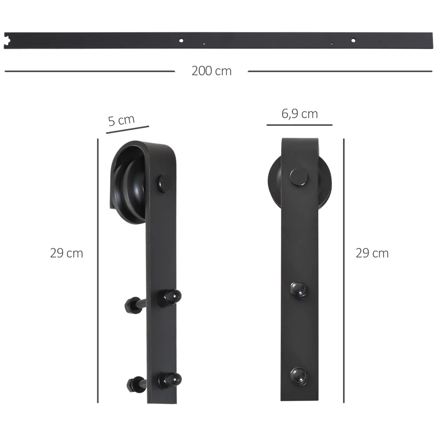 - INSTALLATION DETAILS: Requires 12cm between the track and the ceiling – Suitable for wooden doors with a thickness of 3.4-4.0cm and a width not exceeding 1m