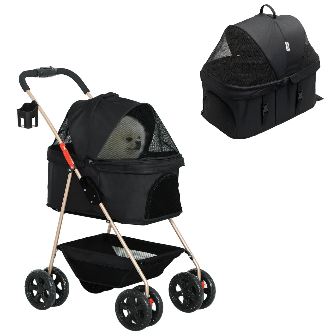 3 in 1 Foldable Dog Stroller with Carrying Bag and Bottom Basket, Black