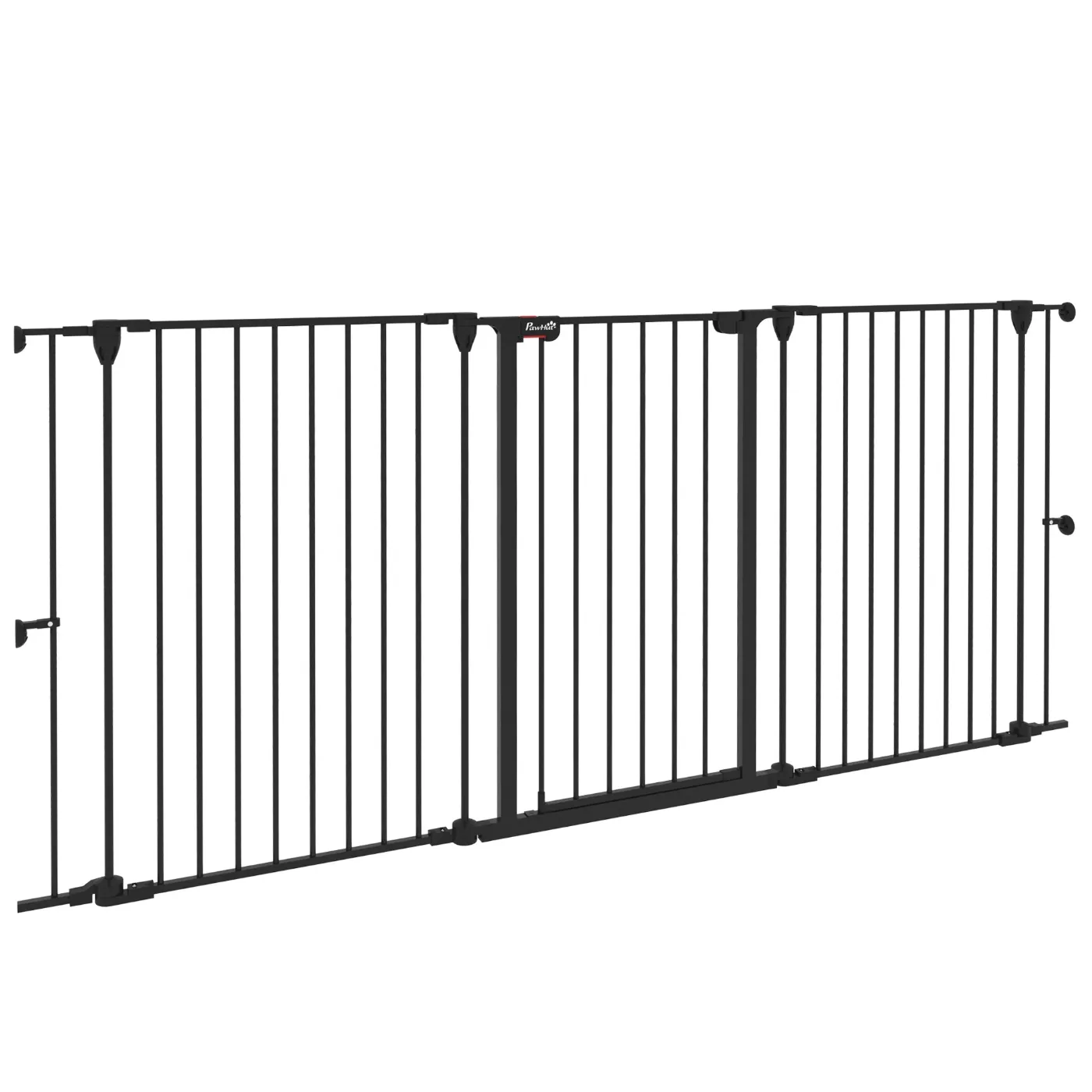 3 Panel Double Lock Medium Dog Gate, 206x90cm, Black