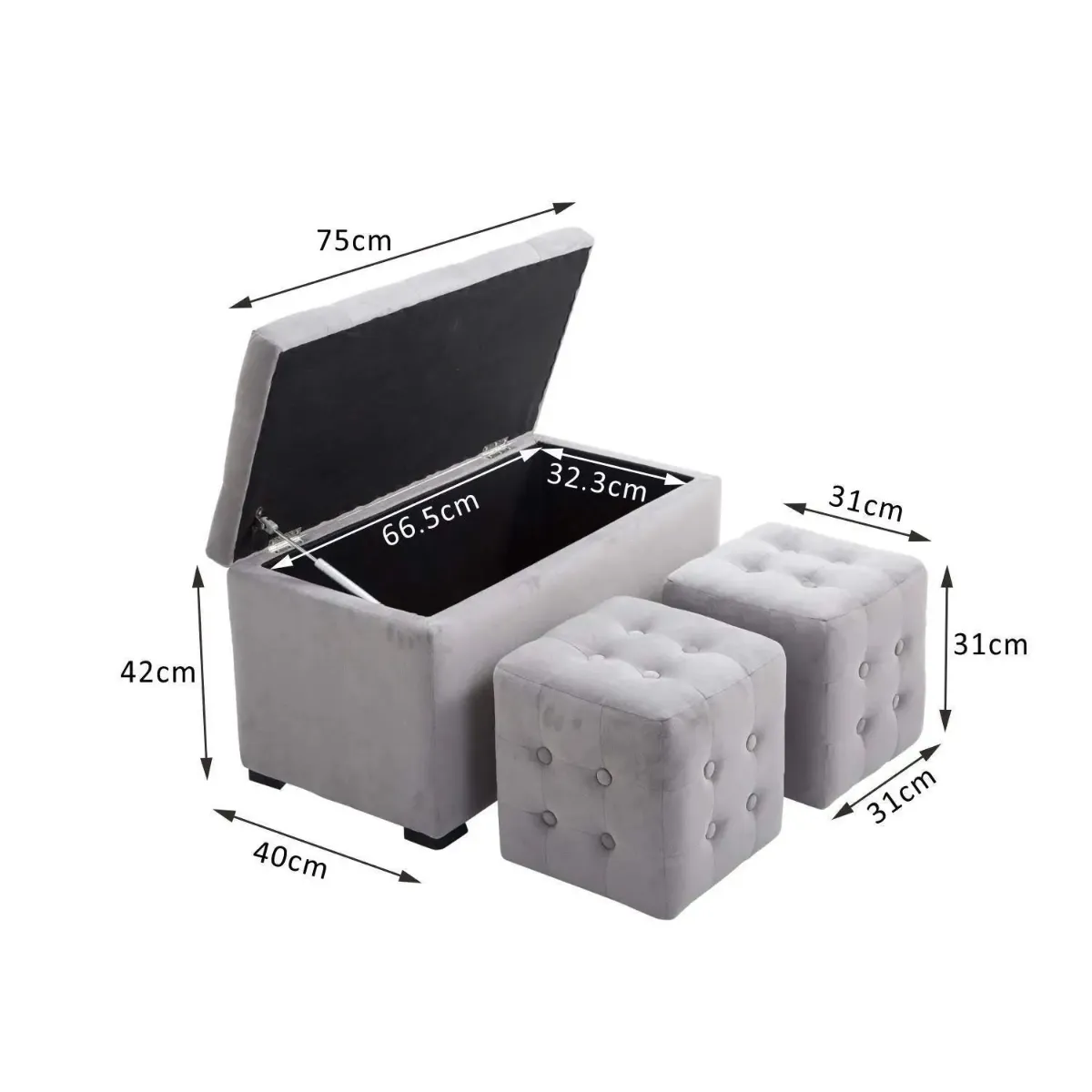 - Color: Pearl gray – Material: Velvet fabric, sponge, MDF wood – Bench size: 75 x 40 x 42cm