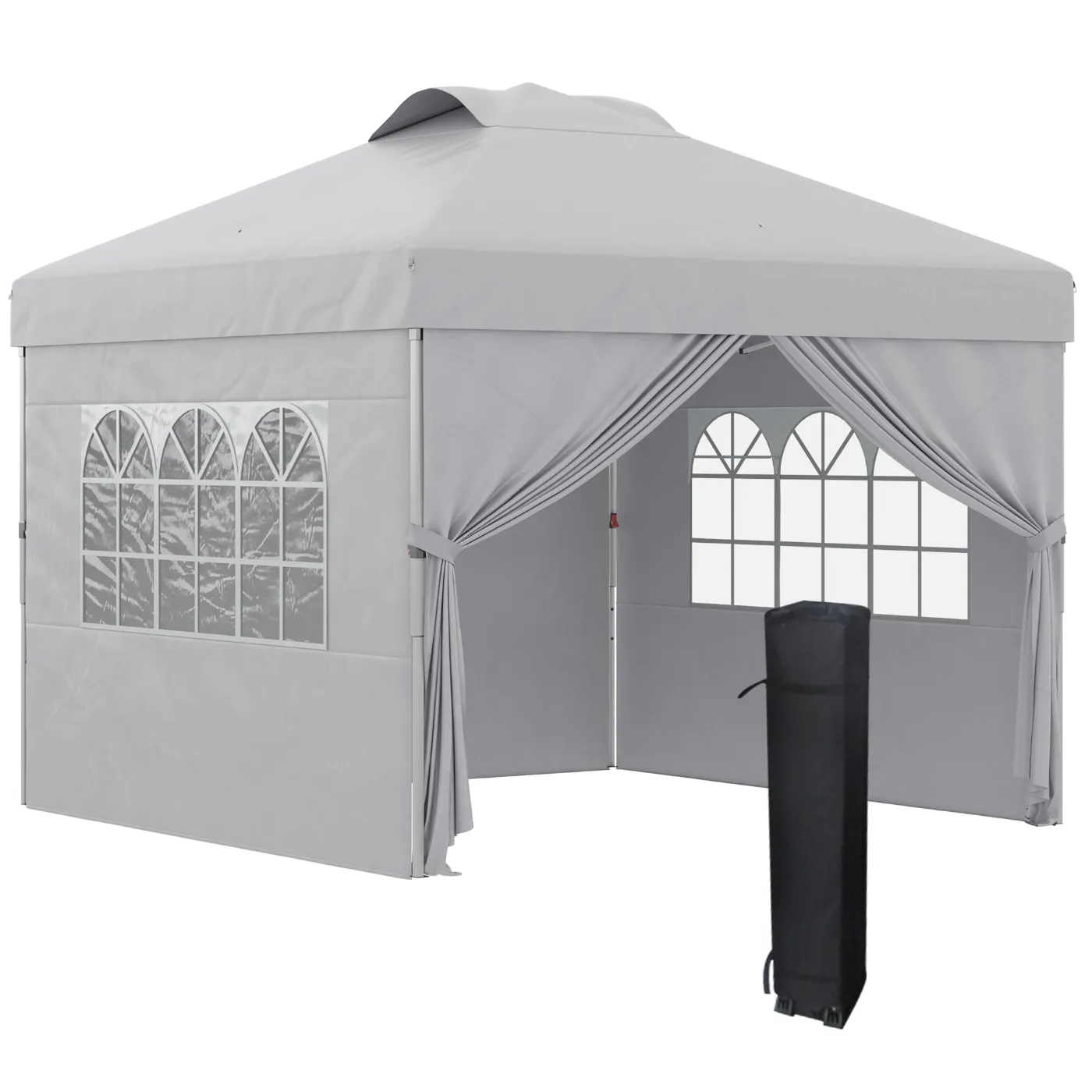 - CATHEDRAL STYLE WINDOWS: The pop-up gazebo is designed with windows to enjoy the sunlight and brighten up the interior space. The zipped door allows for quick access and you can remove the side walls to allow the wind to cool the space during hot days