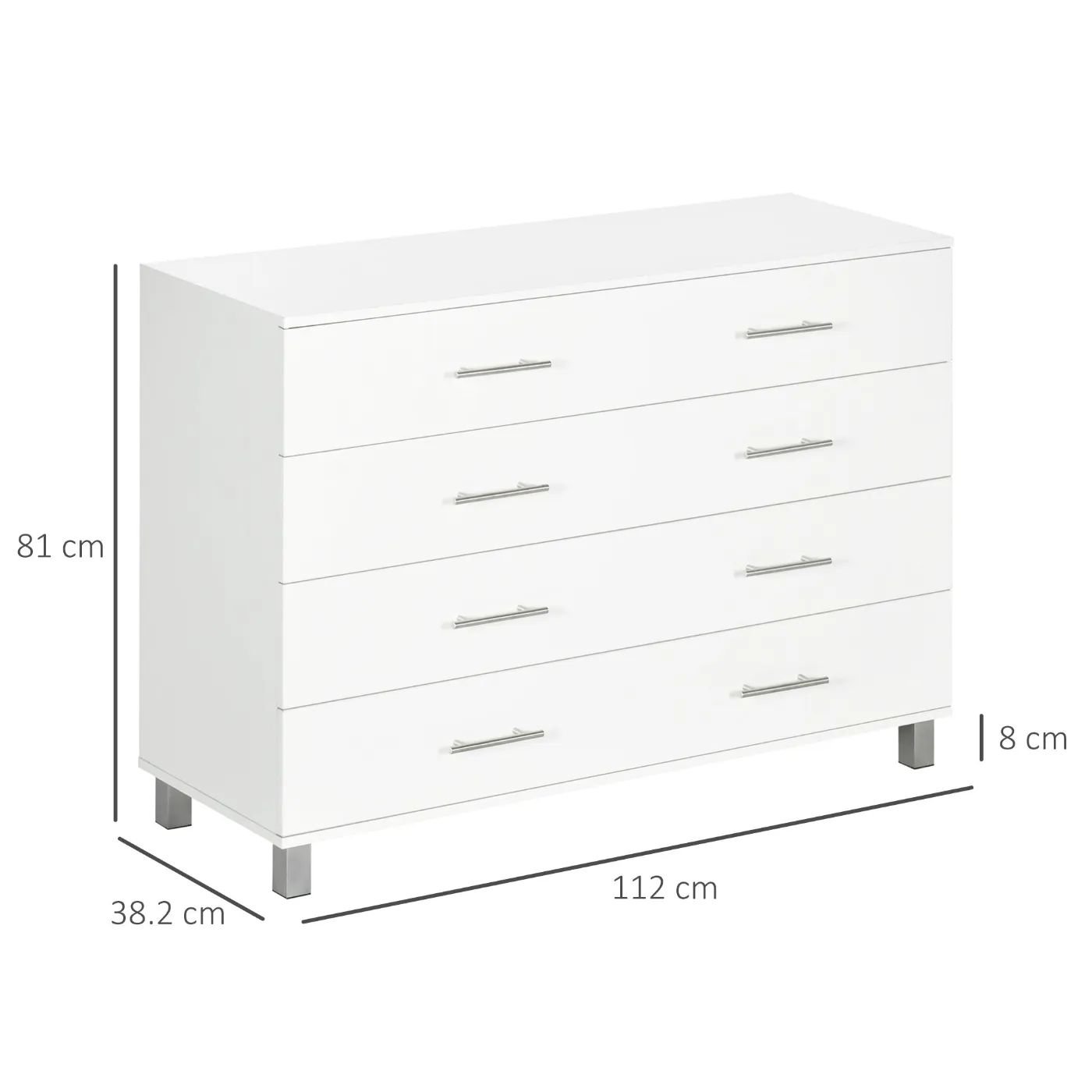- PRACTICAL DESIGN: The bedroom chest of drawers has a laminated surface with a slightly protective finish, resistant to damage from water splashes. It is equipped with elegant silver-colored metal handles, which make it easy to open the drawers