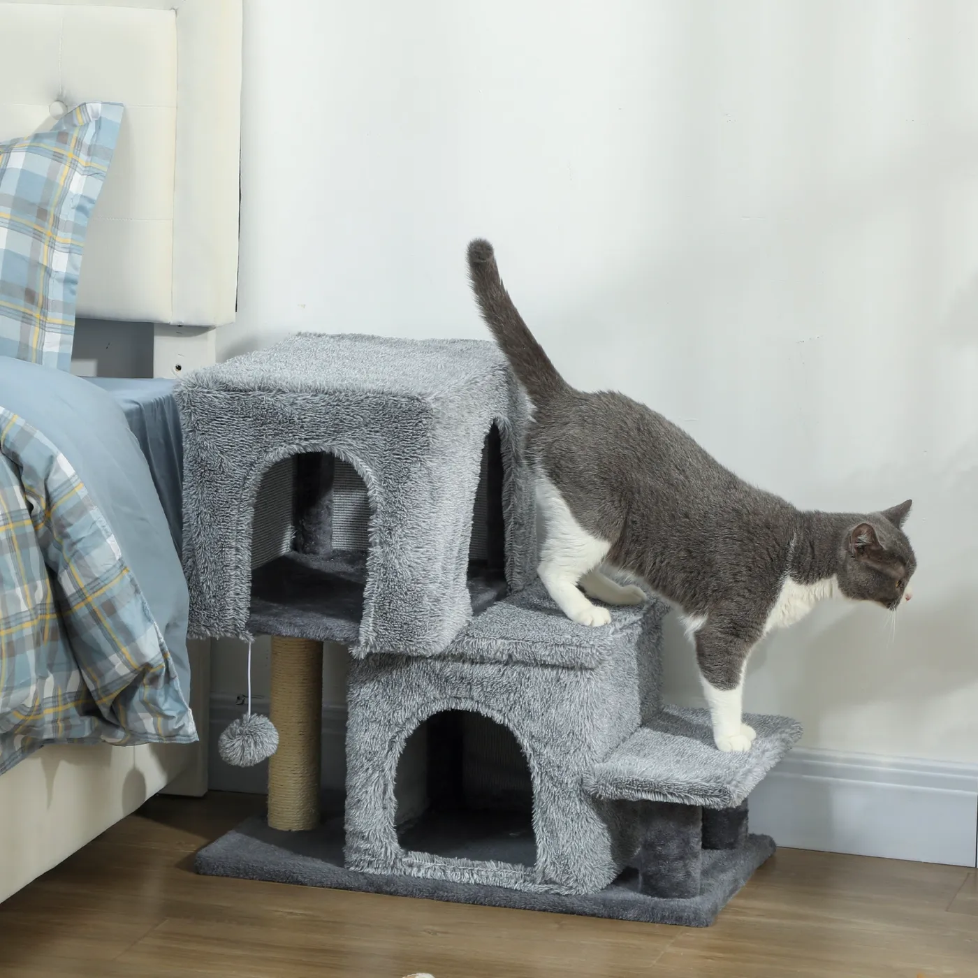 - PROTECT YOUR FURNITURE: Equipped with a sisal scratching post, this cat ladder satisfies the scratching instinct of felines, preventing them from sharpening their claws on your home furniture.