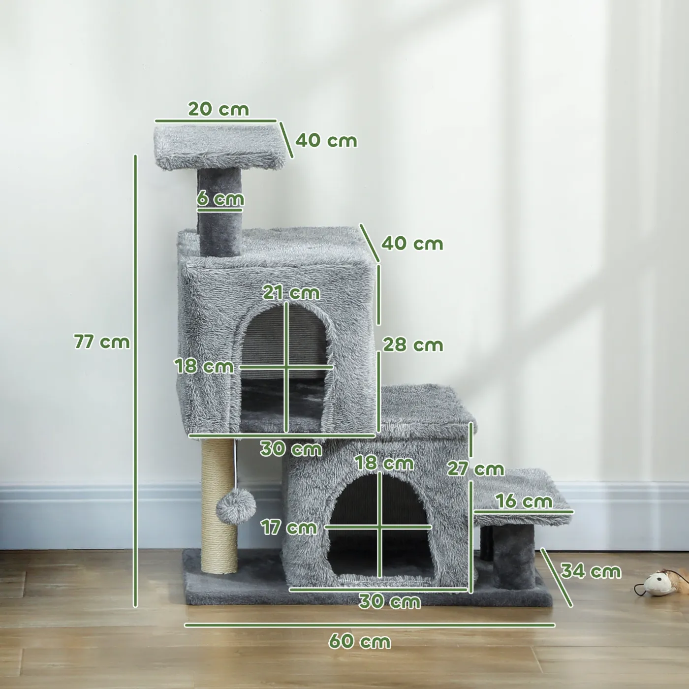 - • Includes a sisal scratching post and a toy to keep your cat entertained