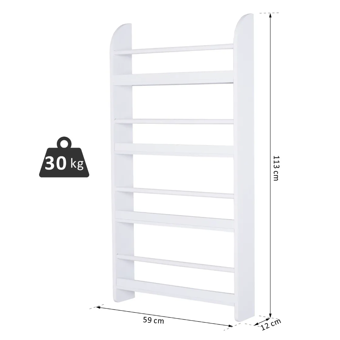 - • Wall bookcase with 4 shelves on which to store books, magazines, newspapers, ornaments or toys