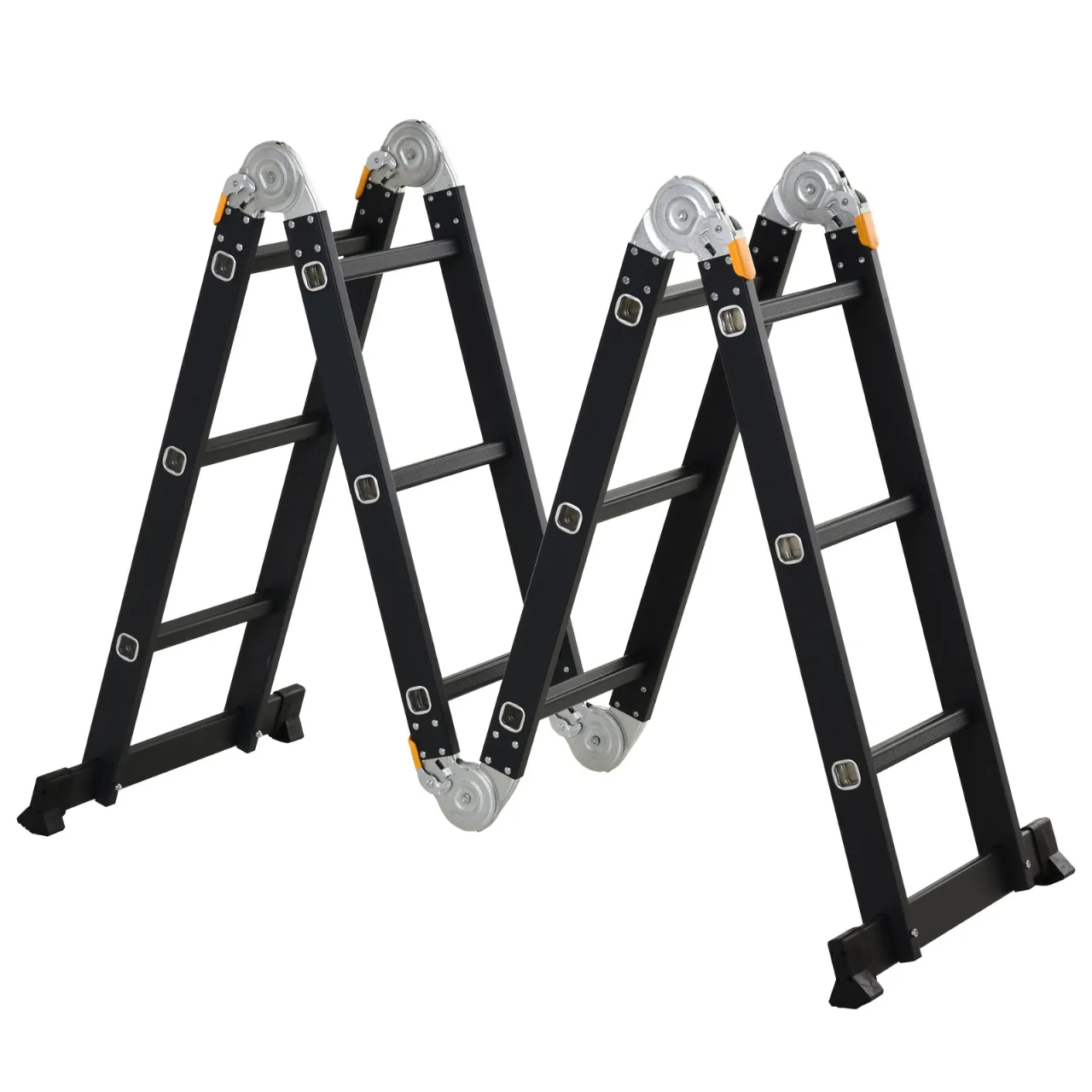 5 in 1 Black Aluminum Ladder for Indoor and Outdoor Use, Max Load 150kg, 370x61x11 cm
