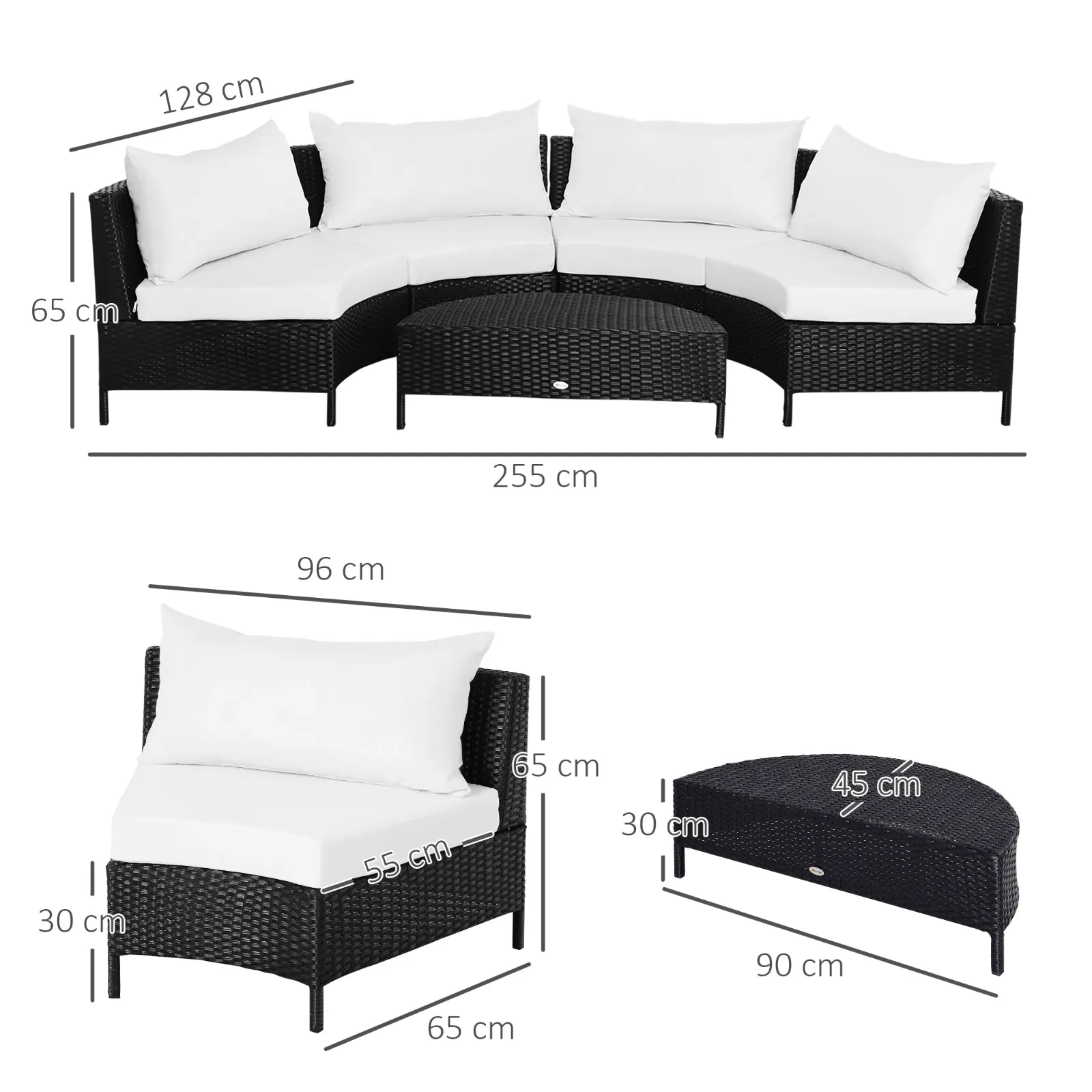 - RECONFIGURABLE DESIGN: This modern 5-piece set includes 4 armless chairs and a semicircular ottoman. Arrange the chairs according to your tastes and needs, and continuously transform the look of your garden!