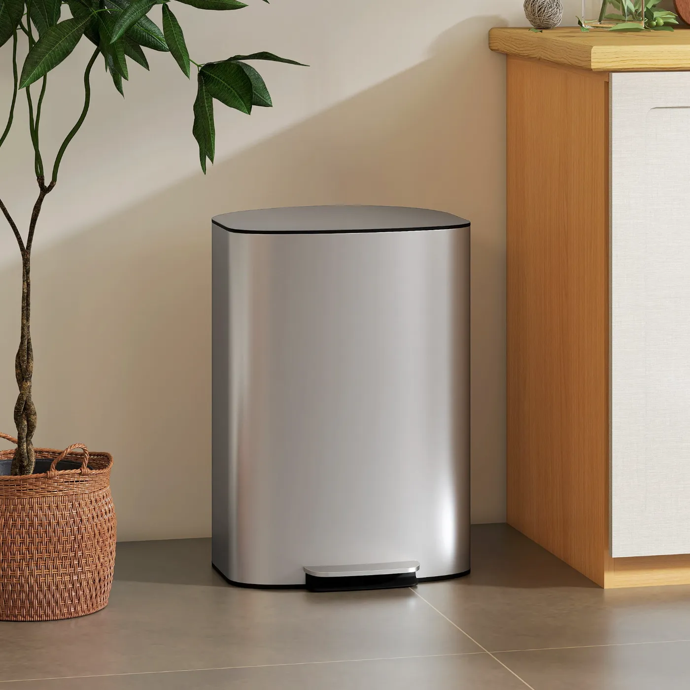 - SOFT-CLOSE PEDAL BIN: The soft-close lid feature of this waste bin ensures quiet, hands-free use.