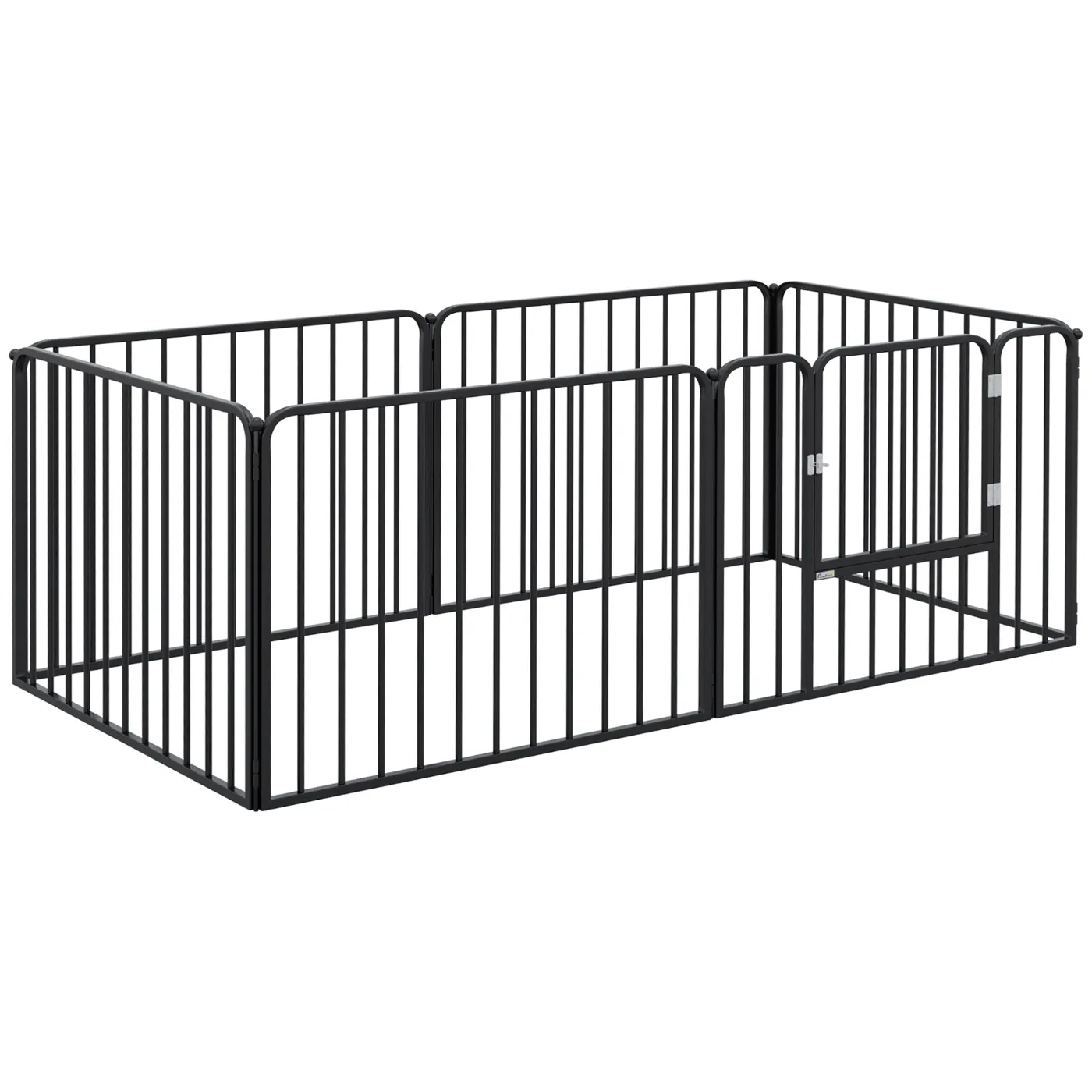 - • 6-panel steel dog enclosure that quickly reshapes into rectangles or other shapes
