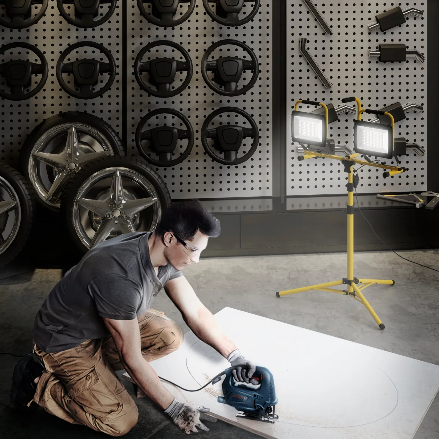 - VERSATILE AND CONVENIENT: Equipped with a convenient carrying handle, this 2-head LED spotlight lamp can be used both with and without the metal tripod provided, allowing for flexible use depending on your needs.