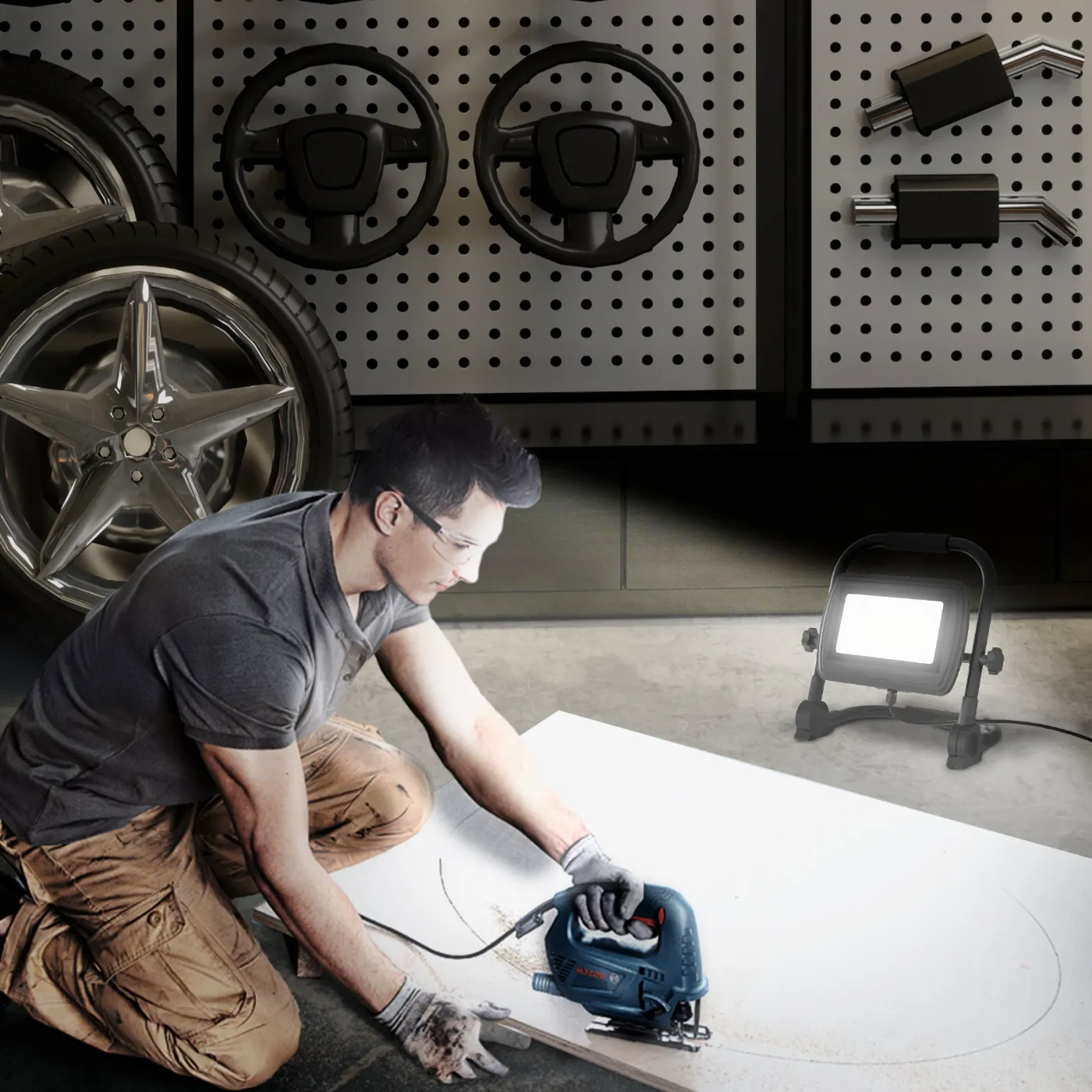 Illuminate your work area like never before with this HOMCOM LED spotlight. Thanks to a luminous flux of 4250 lumens and a color temperature of 6500K, you will enjoy natural colors and superb visibility even in low light conditions. The waterproof and IP65 certified structure is ideal for any working environment, ensuring clarity and safety even in the rain or in the presence of dust. Features: • The 4250 lumen brightness of the LED spotlight improves visibility in poorly lit environments • The 6500K color temperature of the LED spotlight imitates natural light • The IP65 rating guarantees durability in humid and dusty conditions • The handle of the LED spotlight lamp facilitates convenient transport to different locations • The lamp heads rotatable and adjustable stand improve the direction of the light• The heat dissipation design prevents overheating, prolonging the life of the lamp• No assembly is required. Technical data:• Color: Black• Material: Aluminum, metal• Overall dimensions: 25.5W x 16W x 25.5H cm• Color temperature: 6500K• Luminous flux: 4250lm• Bulb type: LED• Power cord length: 1.5m• Protection rating: IP65• Power: 50W• Voltage: 220-240V, 50HzPackage Contents:• 1 x LED Spotlight• 1 x Assembly Manual