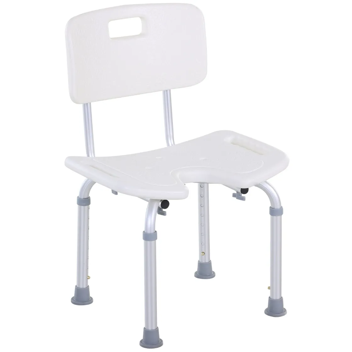 - U-SHAPED SEAT WITH DRAINAGE HOLES: The shower chair is made of durable plastic to prevent water accumulation during use. The non-slip feet ensure stability and safety to prevent slipping or unexpected movements