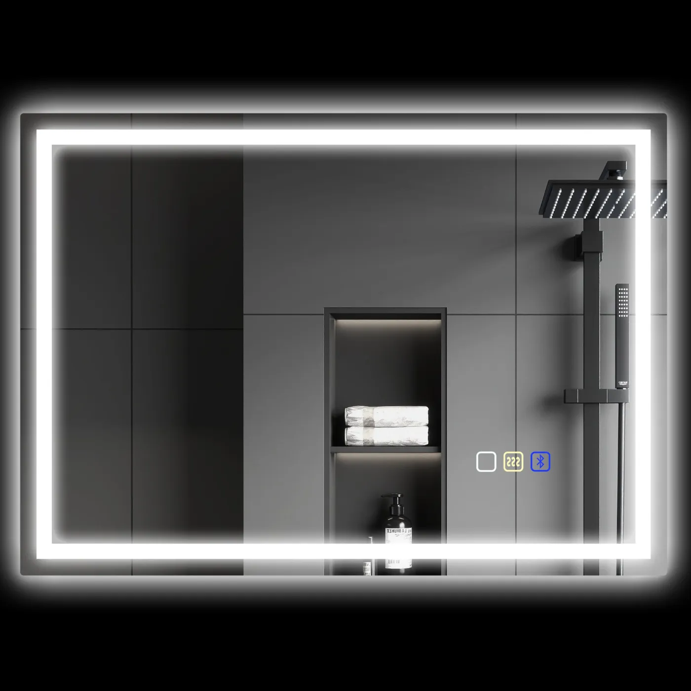 - TOUCH CONTROL & MEMORY FUNCTION: Easily control your bathroom mirror with intuitive buttons that glow in the dark. Long press to dim completely. Memory function retains the last setting used and LED lights last up to 50,000 hours