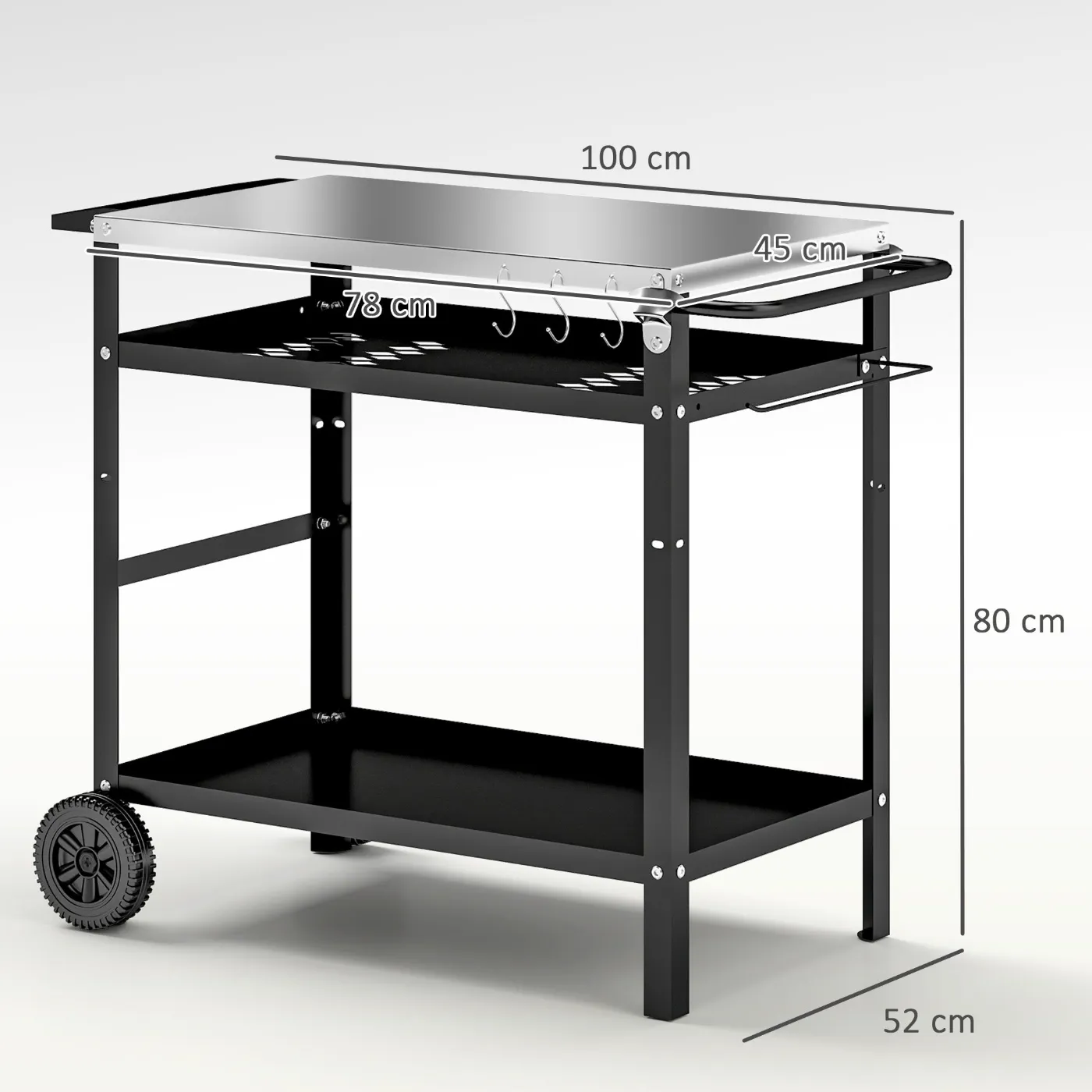 - STAINLESS STEEL WORKTOP: The outdoor kitchen cart has a 78 x 45 cm stainless steel work surface, easy to maintain and ideal for placing pizza ovens, portable grills and griddles for all your food preparation needs.