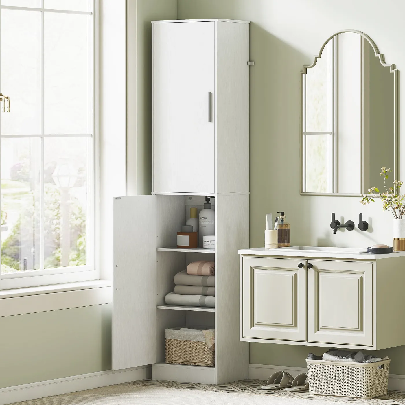 • SPACE-SAVING DESIGN: This tall and narrow bathroom cabinet optimizes vertical space, making it ideal for furnishing small bathrooms or areas with limited floor space.