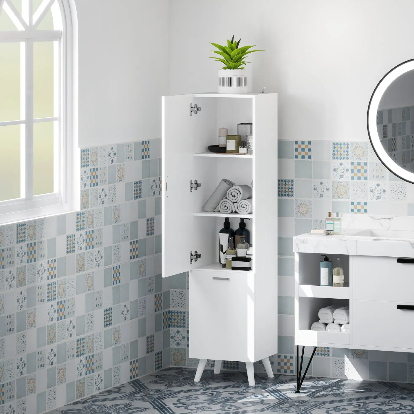 - SAFE STRUCTURE: The anti-tip design of our bathroom cabinet ensures stability and safety, representing a reliable solution for every home with children and pets inside.