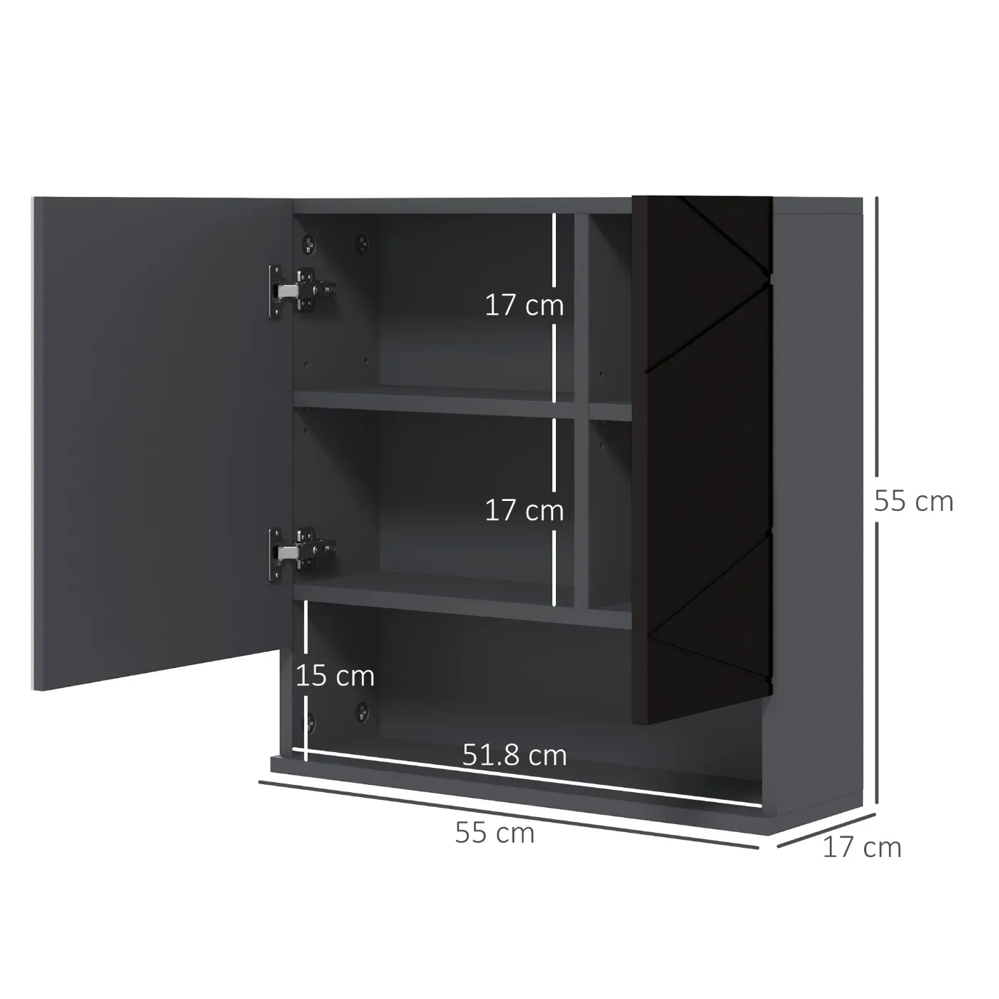 Bathroom Mirror Cabinet with 2 Doors and Adjustable Wooden Shelves, 55x17x55cm, Black