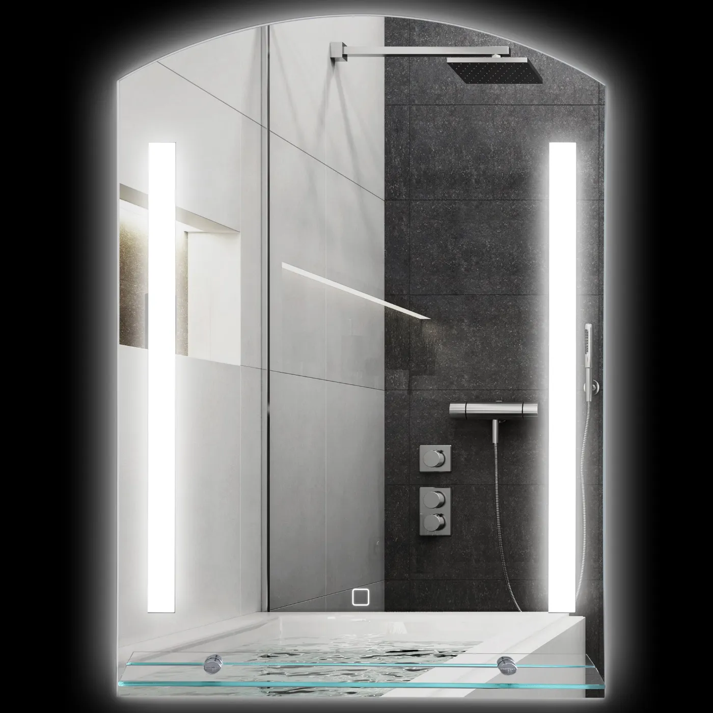 - TOUCH LED LIGHTING: Equipped with a front touch button, our bathroom mirror guarantees immediate activation of the 3-color LED light included, offering optimal and adjustable brightness to guarantee perfect visibility during your routine. This mirror also includes a memory function for the lighting, maintaining the last parameters used for the next activation
