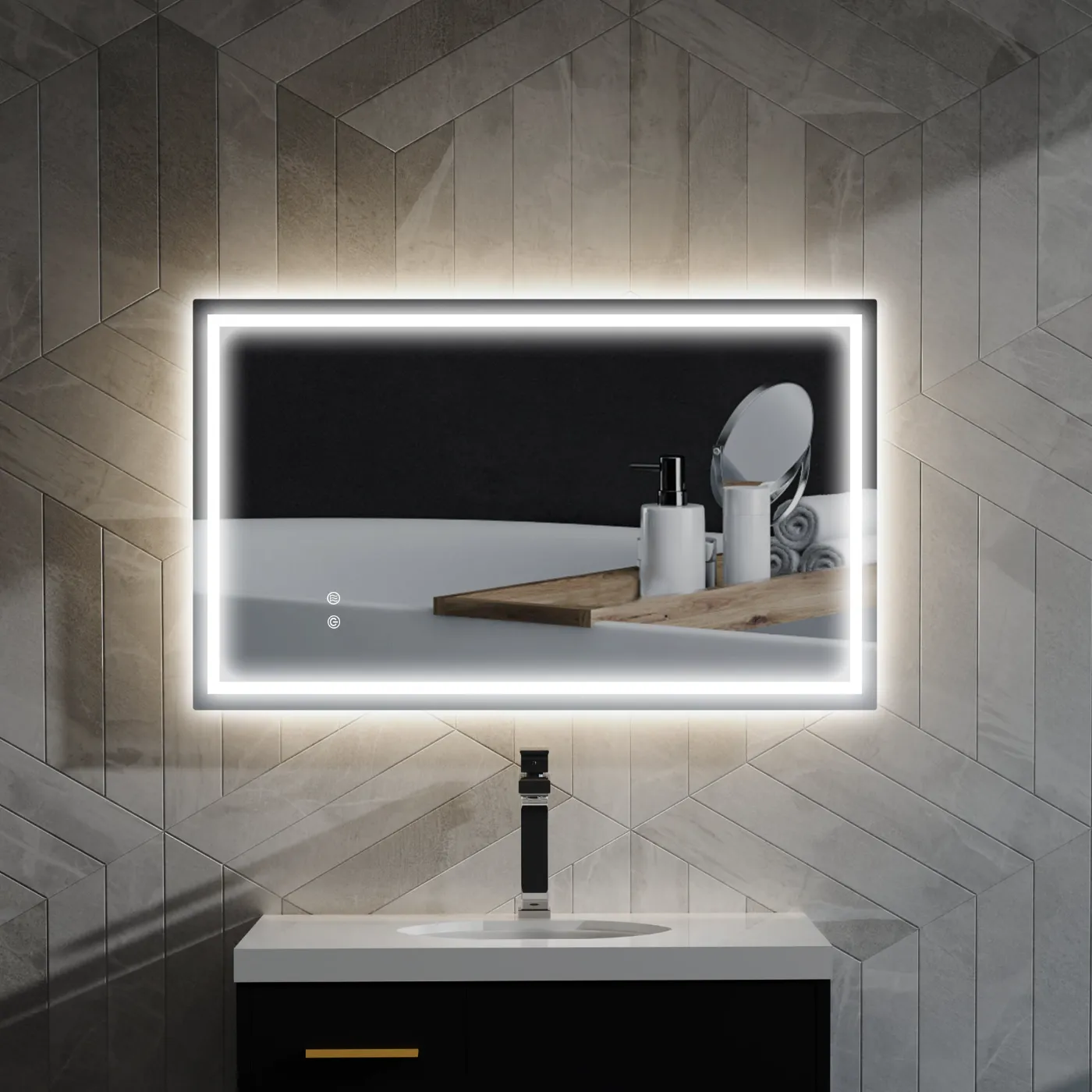 • ADJUSTABLE: Our bathroom mirror has 168 LED lights that provide back and front lighting, giving you the ability to adjust the brightness from 10% to 100% and choose between 3 color temperatures (warm white, natural white and cool white)