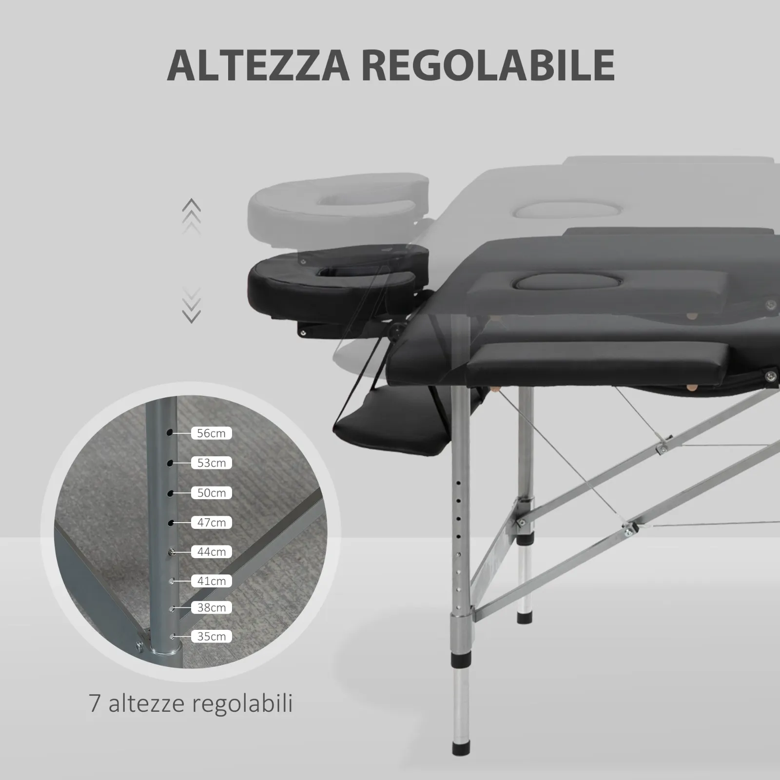 - ADJUSTABLE HEIGHT: The massage table features 7 height levels from 62 to 83 cm to provide the most comfortable elevation.