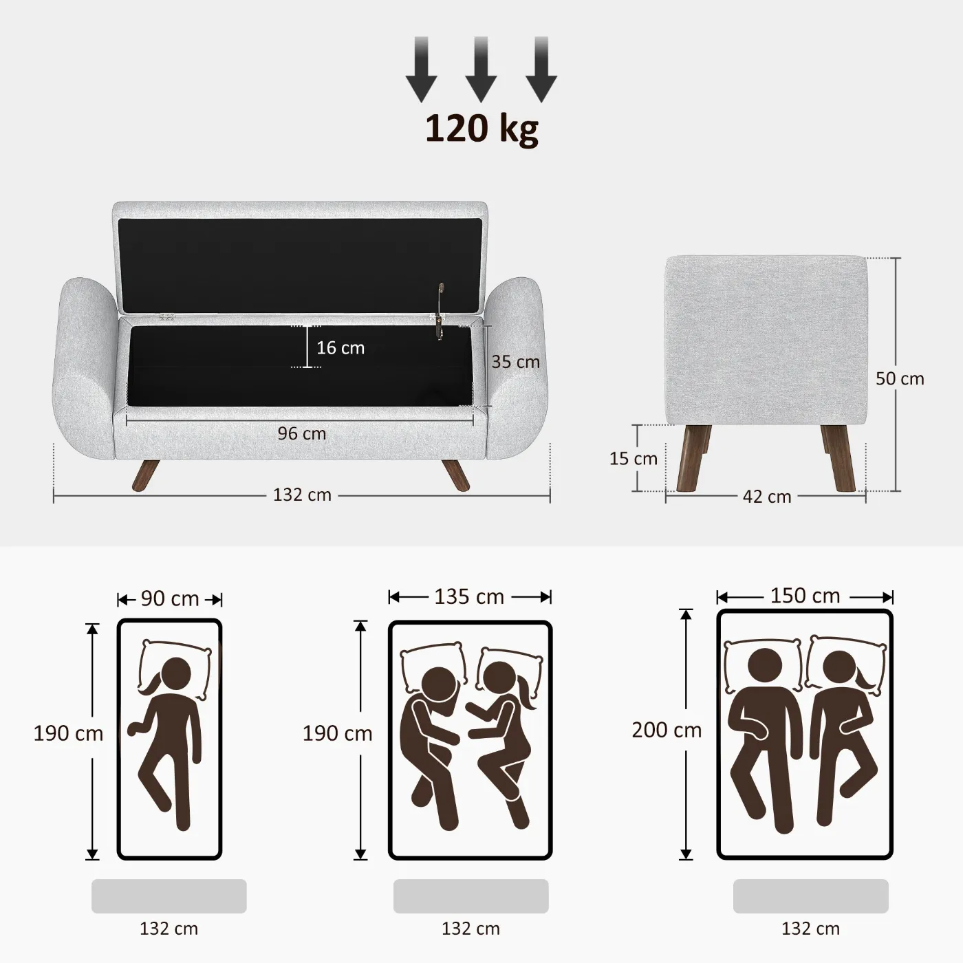 - • Storage bench design with lift-up lid featuring hinges for safe and easy access