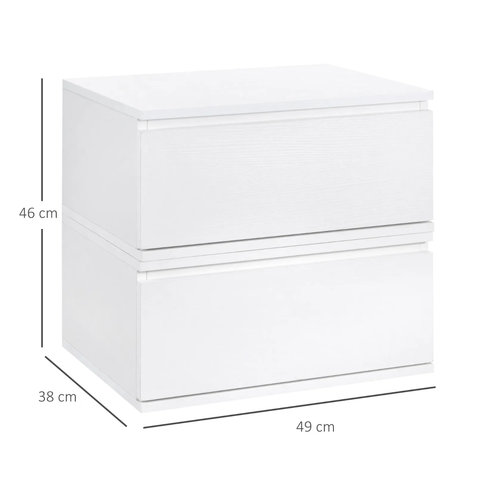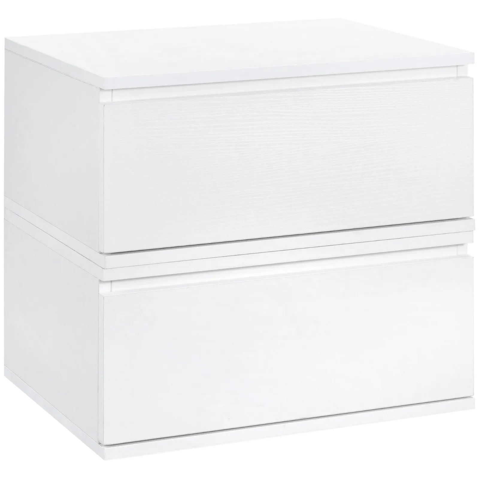 Bedside table set 2 pieces with drawer and design suspended in chipboard and mdf, 49x38x23 cm, white