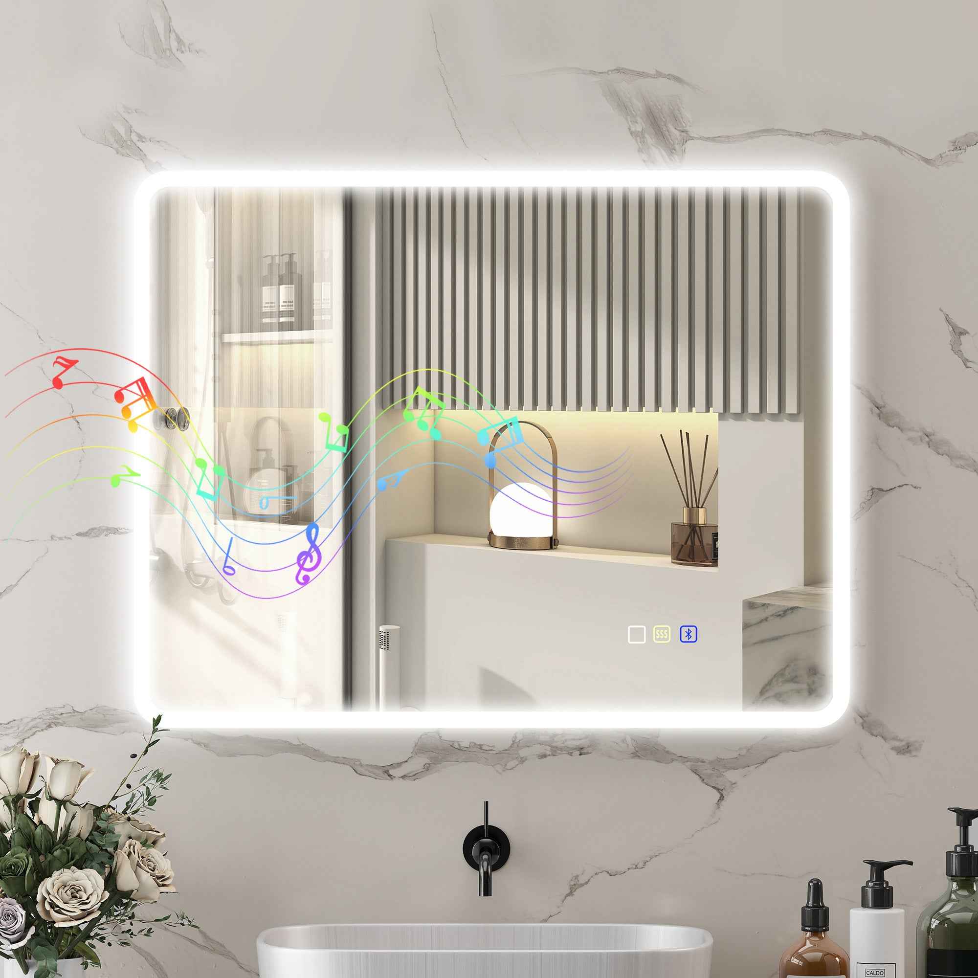 • START YOUR DAY WITH MUSIC: Forget monotonous mornings! This Bluetooth-enabled bathroom mirror lets you play your favorite tunes while you get ready, transforming your bathroom into a true private concert space. Energize your morning and end your day on a relaxing note.