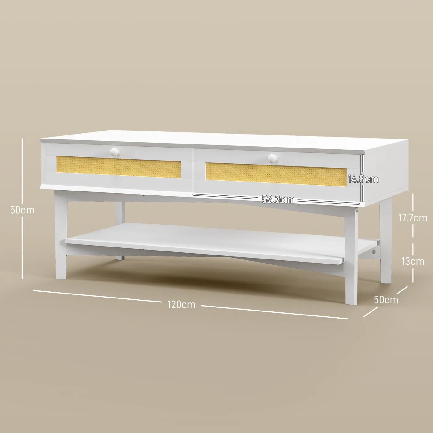 - BOHO STYLE: Our white coffee table features rustic and boho style rattan drawer fronts, making it a great addition to your interior.