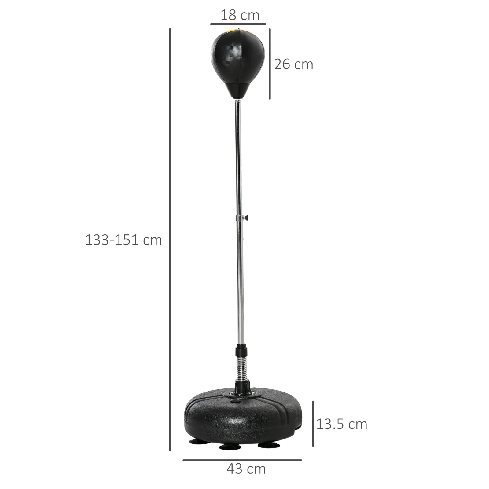 The Homcom boxing bag is the best choice for boxing enthusiasts and bodybuilders to train at home or in the gym to improve coordination, reflections and legs. The robust base has a suction cup to fix the tool to the ground, ensuring all the stability you need during training. 4 different heights allow you to adjust it according to your personal needs. Cora -lighter: • Height of the adjustable bar from 133cm to 151cm • Basic weight of 16.5kg if filled with water, 33kg with sand or 25kg with water and water • base with resistant suction cup It is difficult to deform • For adults and boys aged 10 and over • 360 ° rebound function • Assembly required technical: • color: gold • materials: pei, metal • dimensions: 45l x 45p x 133-151acm • Basic size: Φ43 x 13.5acm- Dimensions Boxing ball: φ18 x 26Acmcontentuto of the package: • 1 x boxing bag • 1 x pair of gloves • 1 x swelling • 1 x instructions