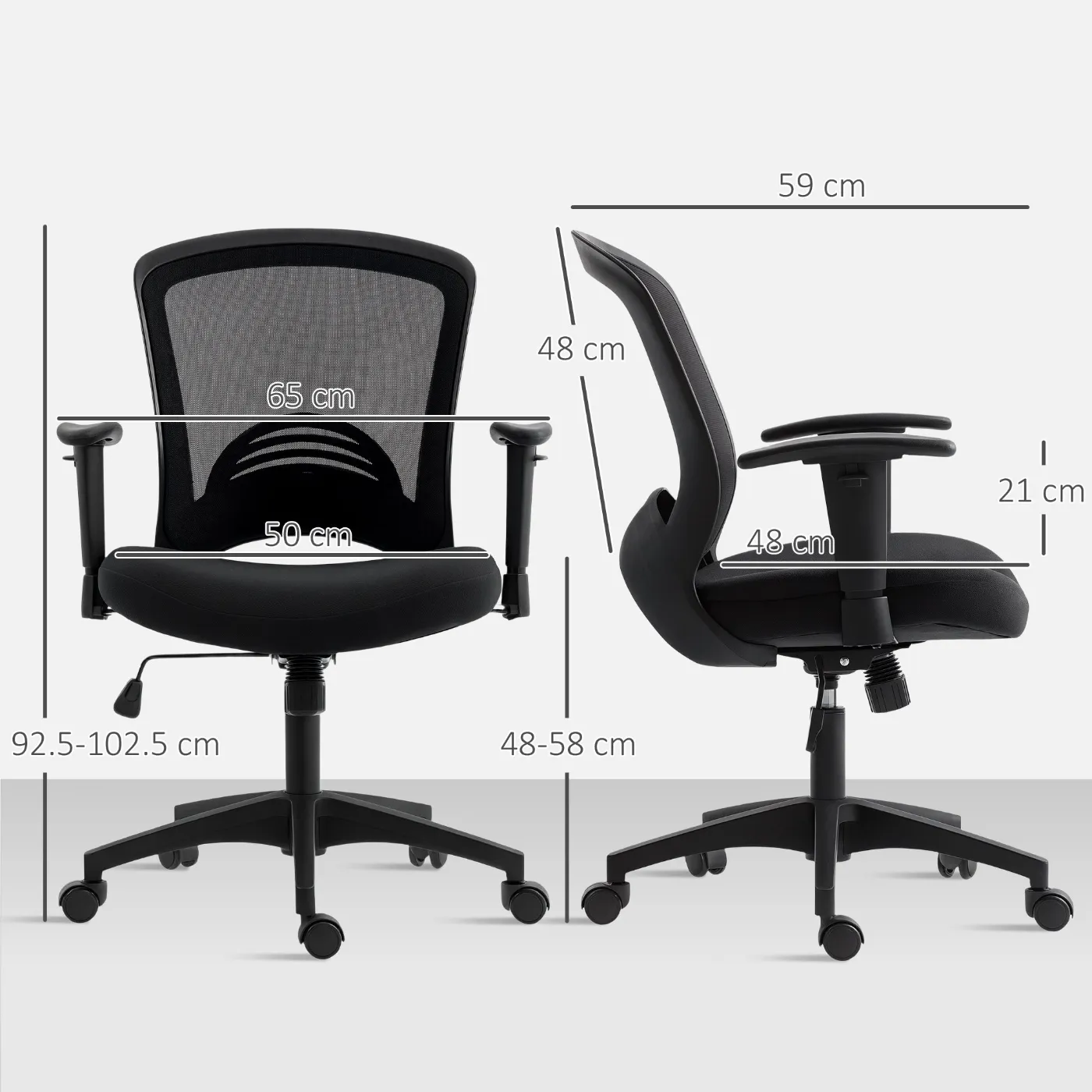 - • Overall dimensions: 65W x 59D x 92.5-102.5H cm