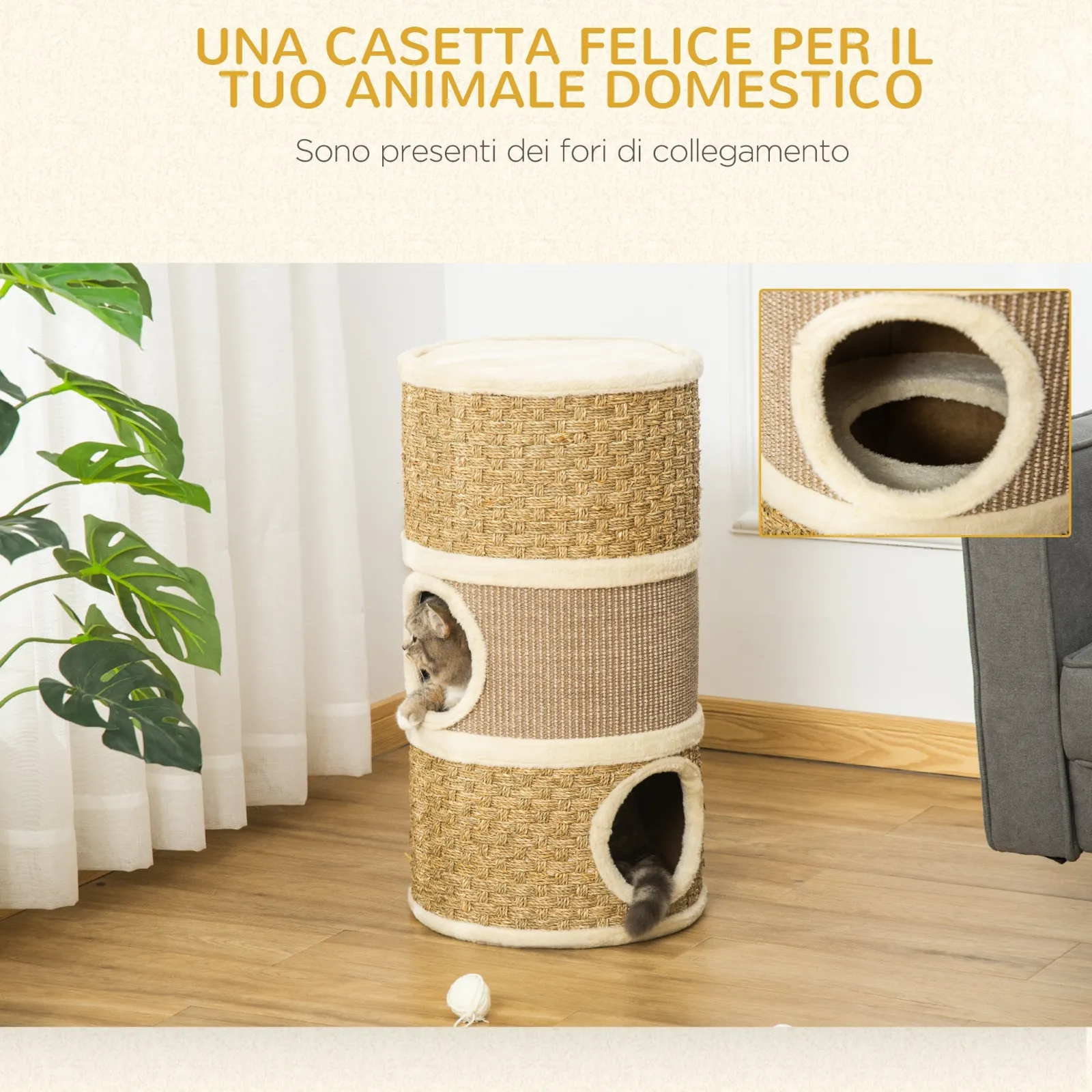 - YOUR FURNITURE IS SAFE: The cat house is covered with sturdy natural sisal rope and seaweed rope, perfect for sharpening claws and preventing cats from scratching your furniture.