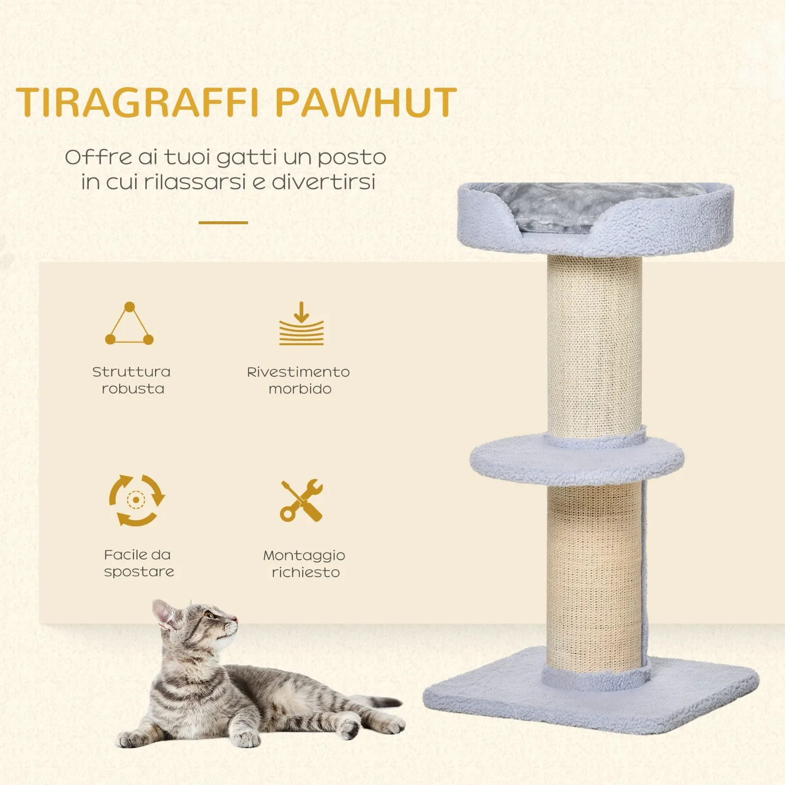- • Sisal rope column: the perfect surface for scratching your nails