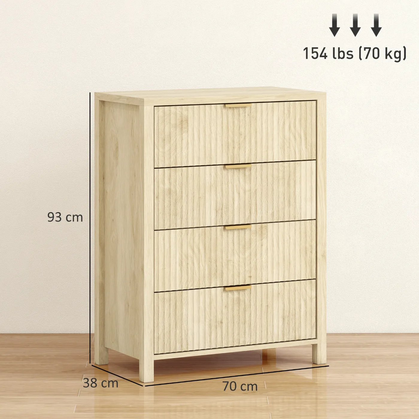 - WOOD-EFFECT FINISH: This chest of drawers features a natural colour with wood-effect texture and grooved drawer fronts, complemented by elegant gold handles that add a touch of warmth and elegance to any room