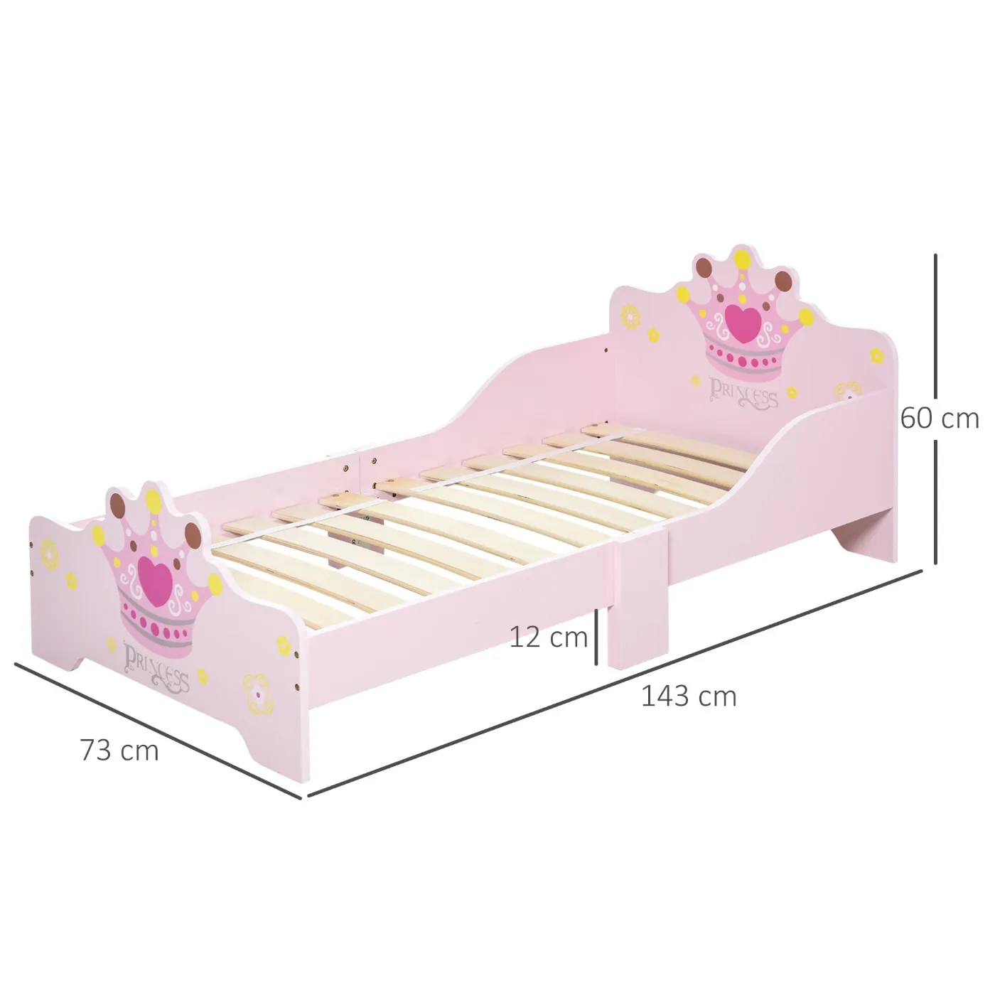 - DIMENSIONS: Overall dimensions: 143L x 73D x 60Hcm. Compatible mattress size (mattress not included): 140L x 70Dcm. Recommended age 3-6 years. Maximum load: 50kg.