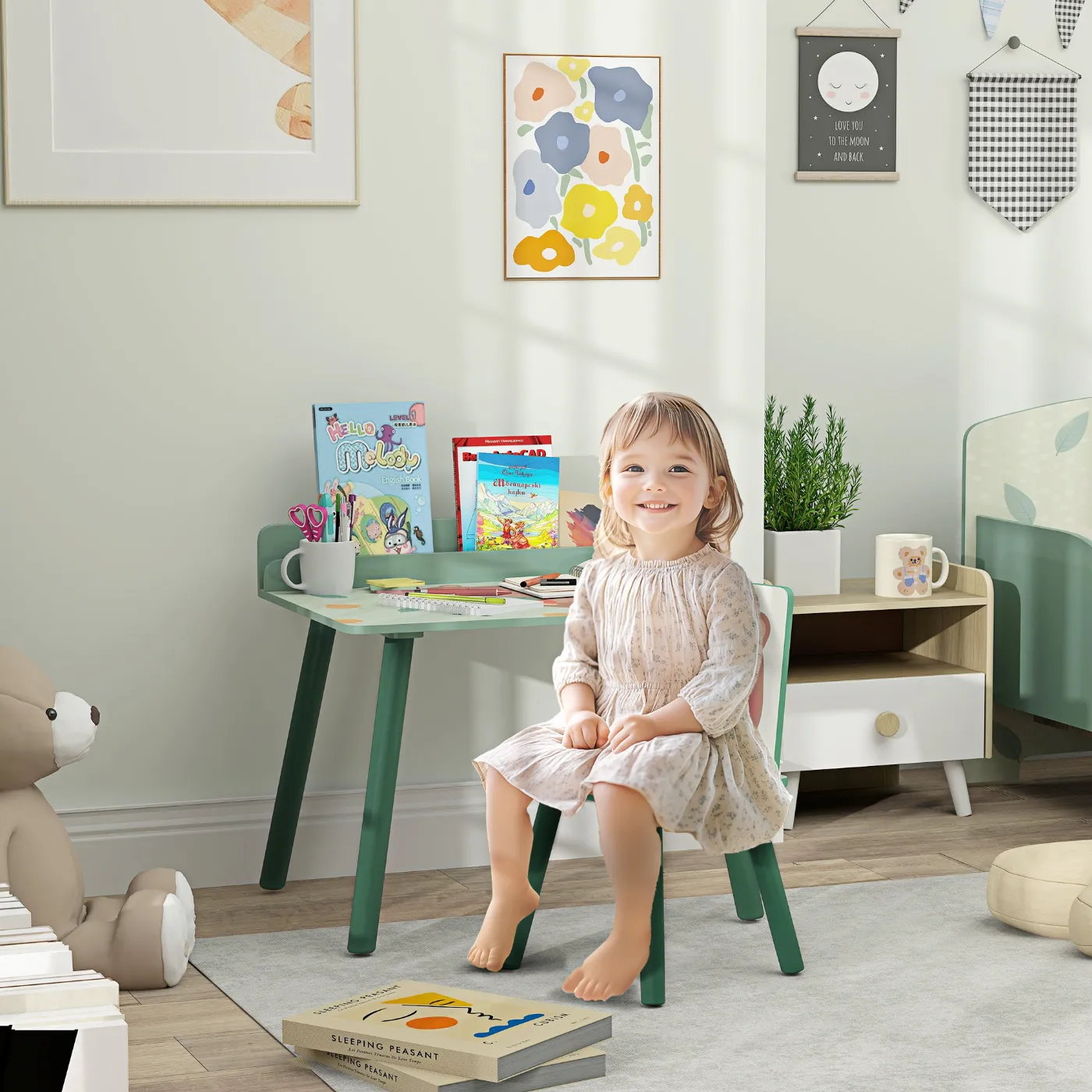 • ORIGINAL DESIGN: The cute cartoon motif of an animal and a child in our children’s desk will be able to add a touch of cheerfulness to any bedroom or classroom.