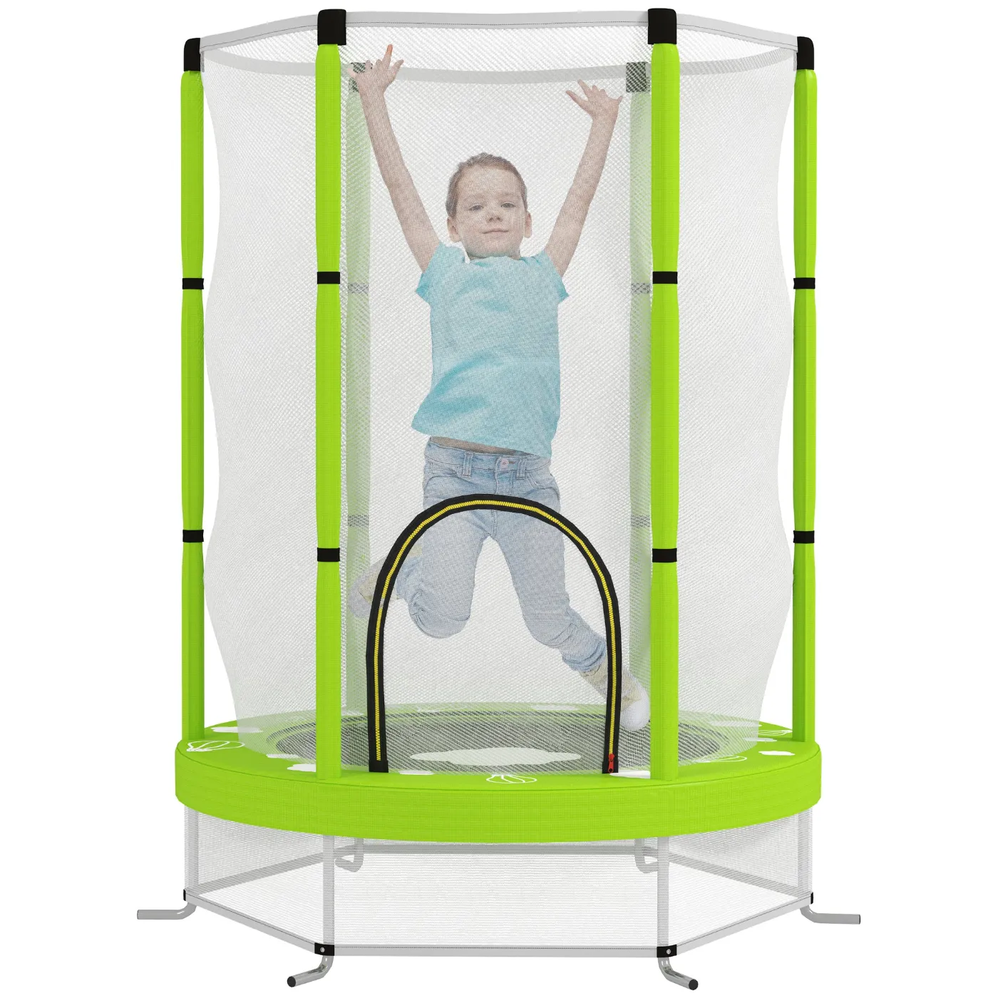 - EASY ACCESS: The base of the trampoline has a side net that prevents children from slipping under the jumping mat. The net has a zipped entrance for safe entry and exit, so children can play worry-free inside and outside the home
