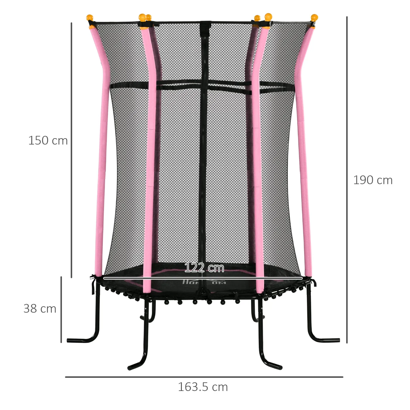 Children’s Trampoline with Hinged Entry and Padded Poles, in Steel, PP and EPE, Ø163.5×190 cm, Pink