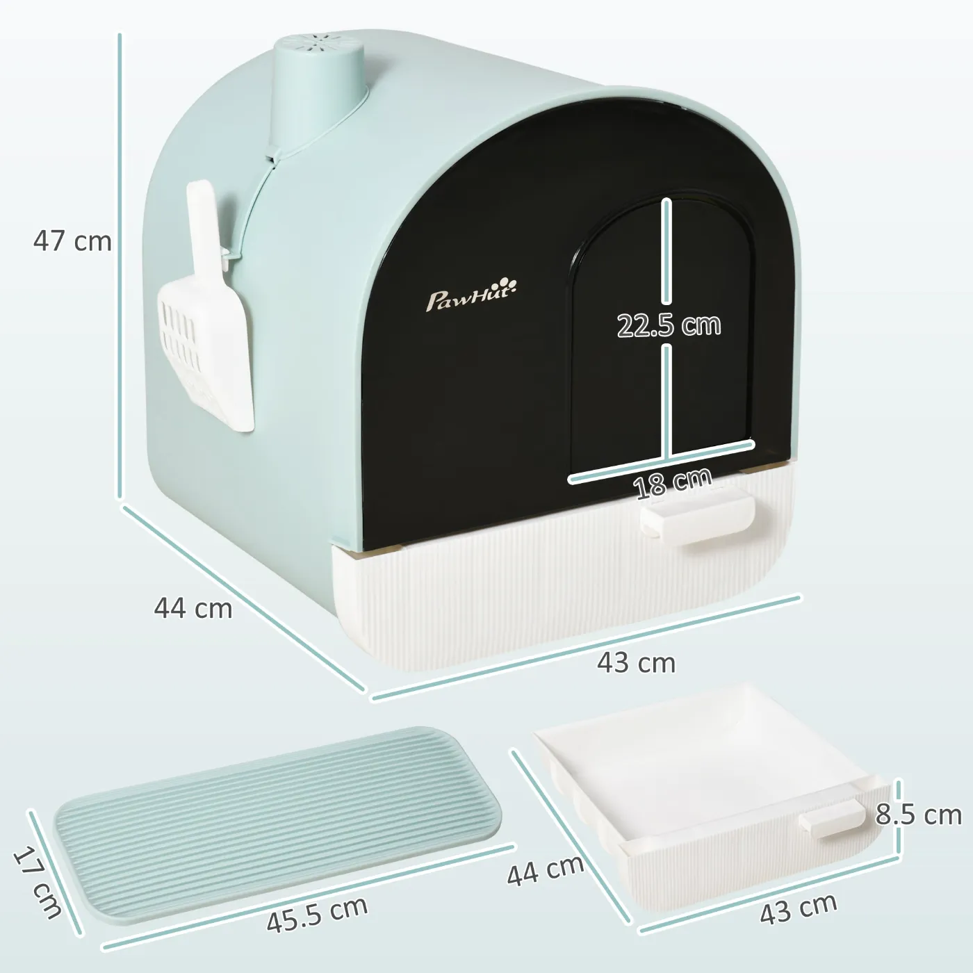 Closed Cat Litter Box with Filters, Scoop and Tray, PP Structure, 43x44x47cm, Green