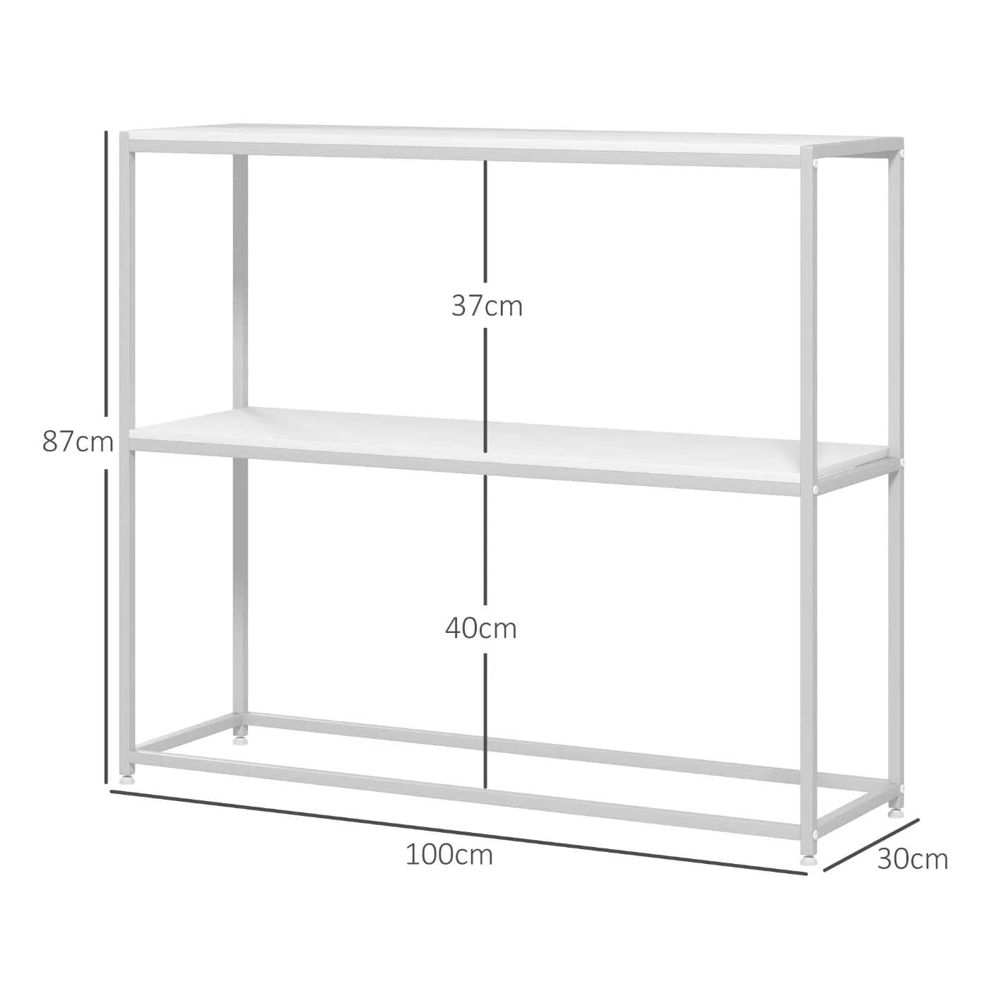 - DIMENSIONS: 100W x 30D x 87H cm. Weight capacity: 20 kg (total), 10 kg (each shelf). Assembly required
